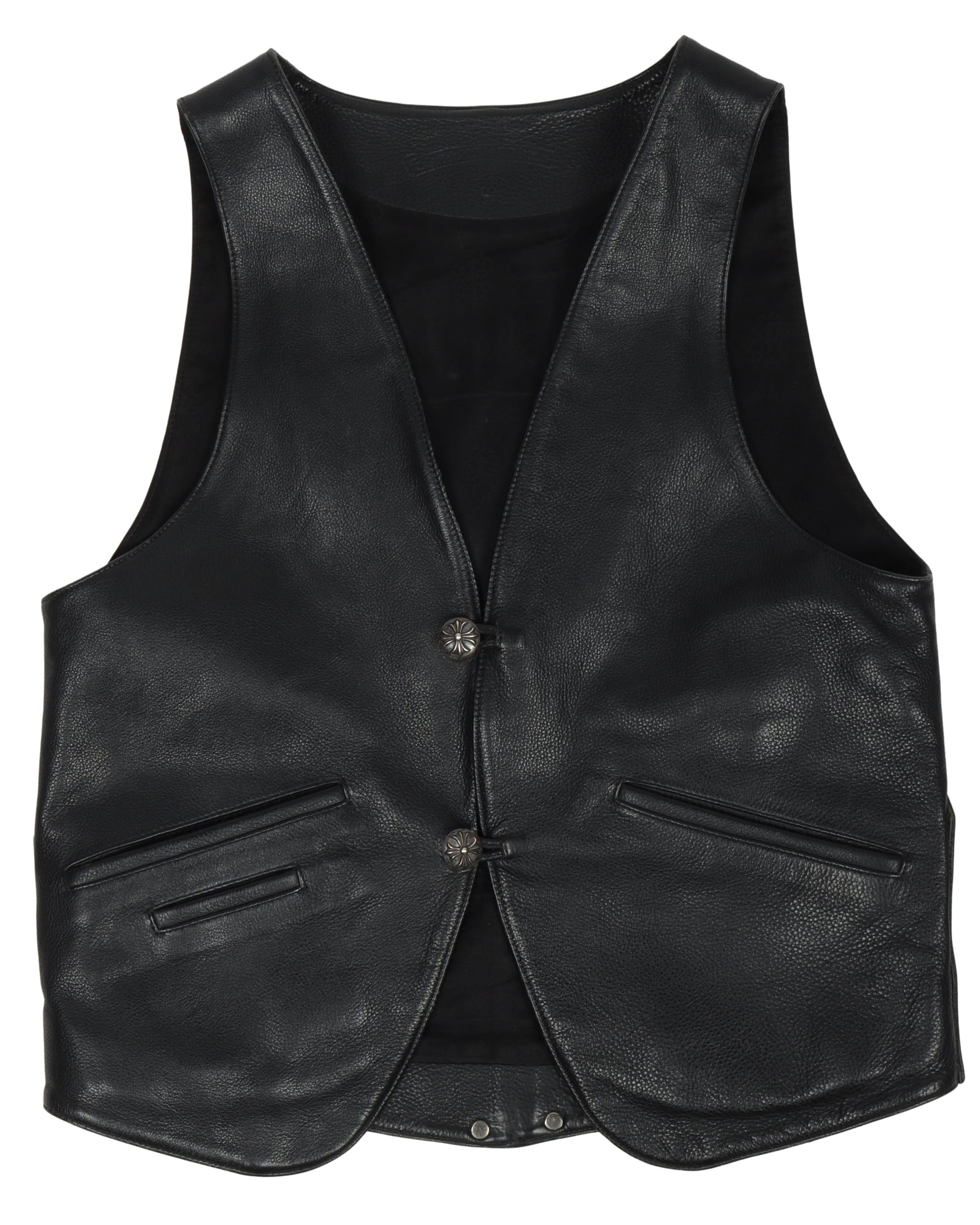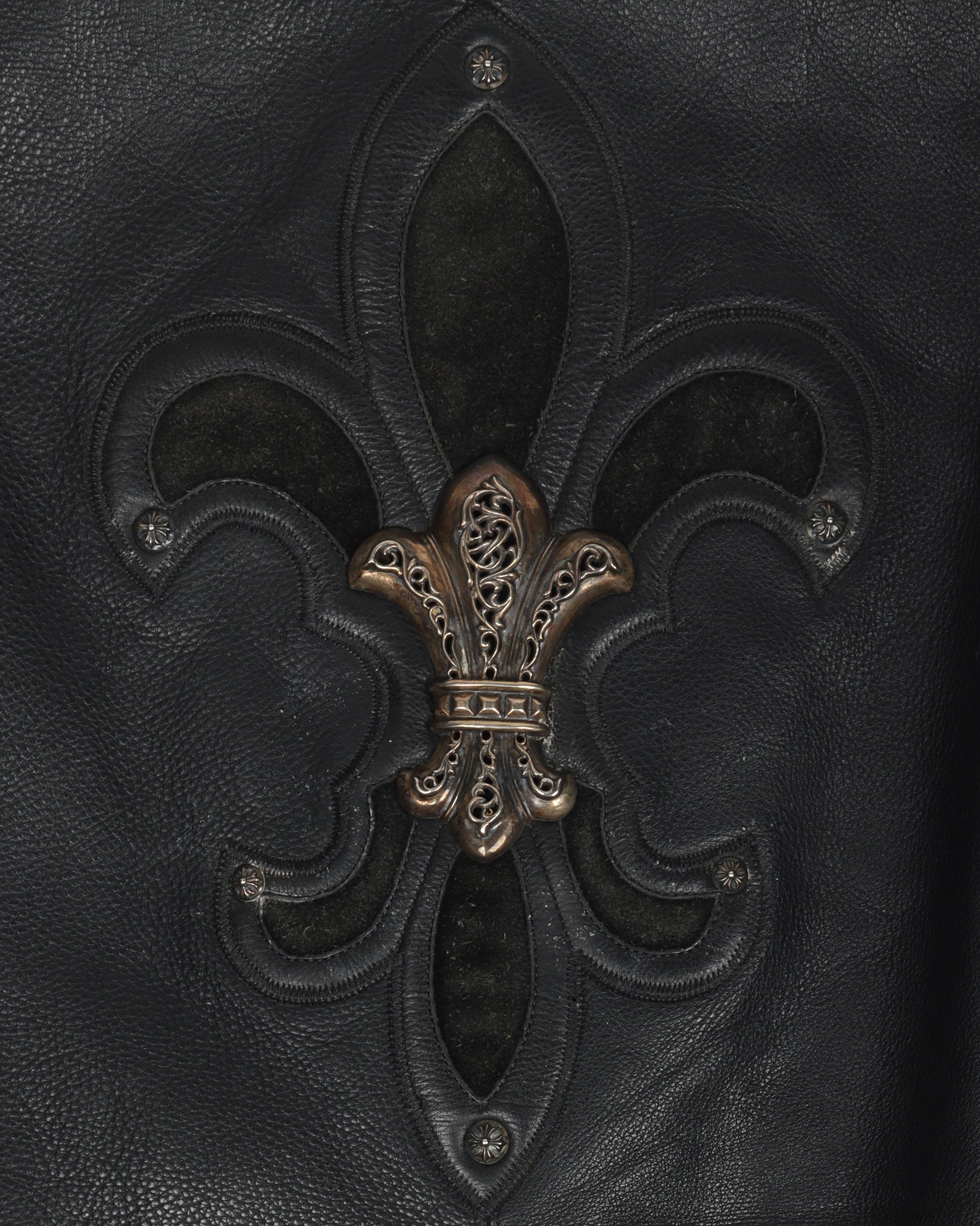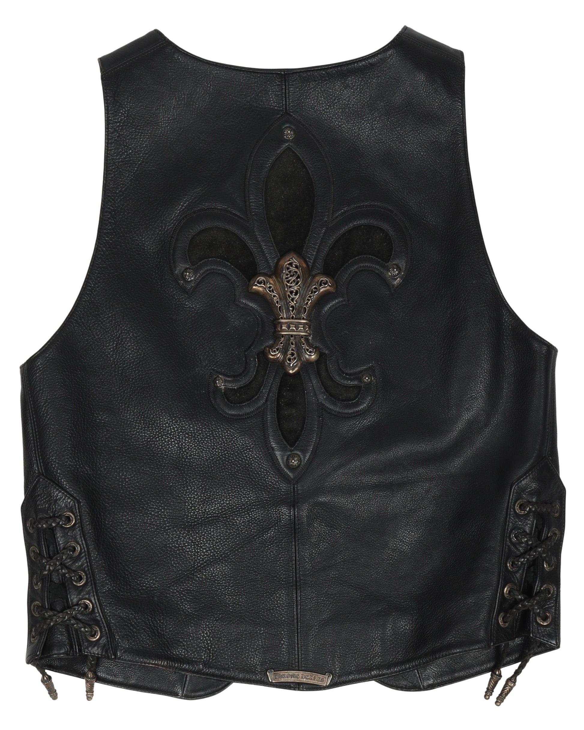 1990s Silver Fleur Cross Leather Vest