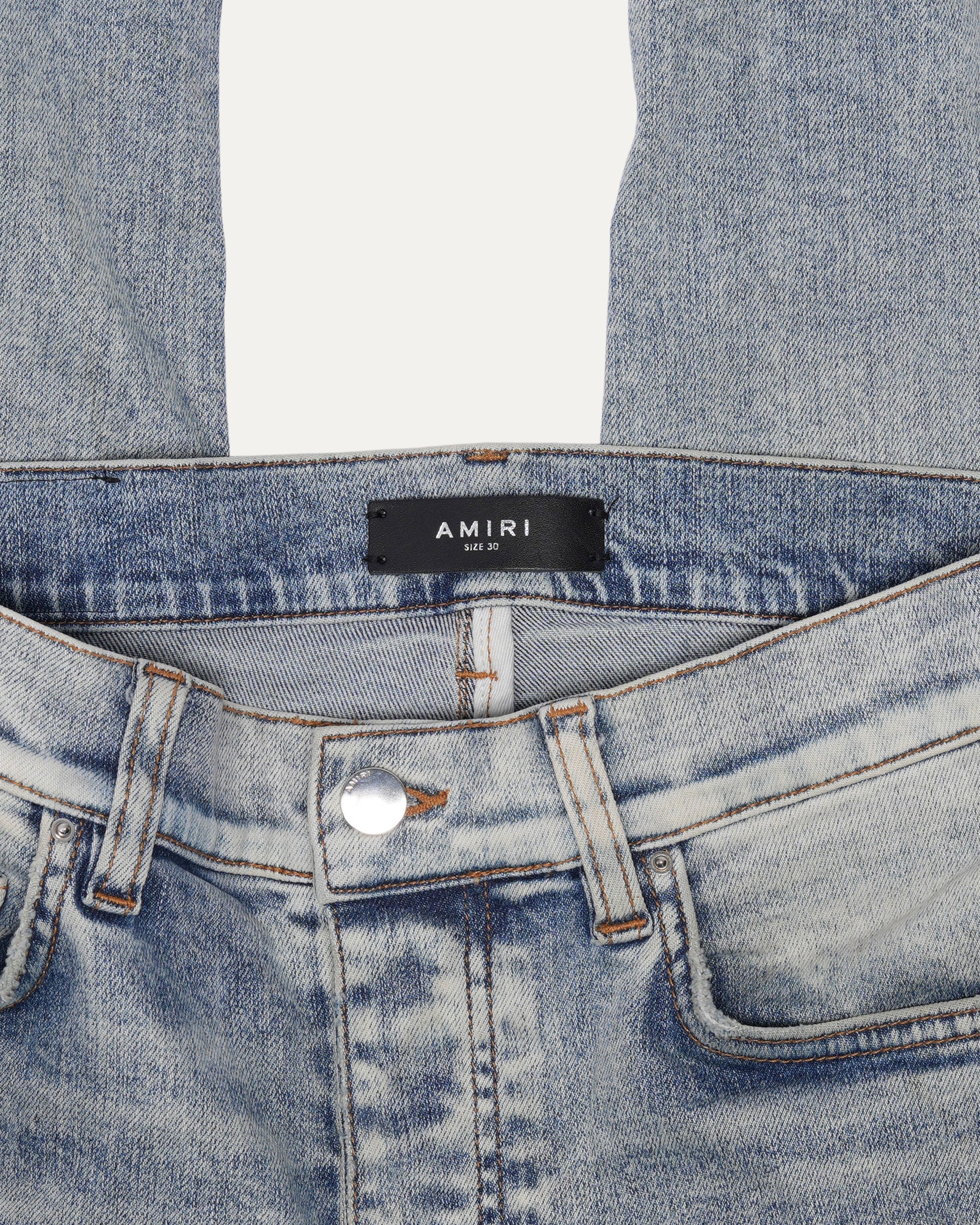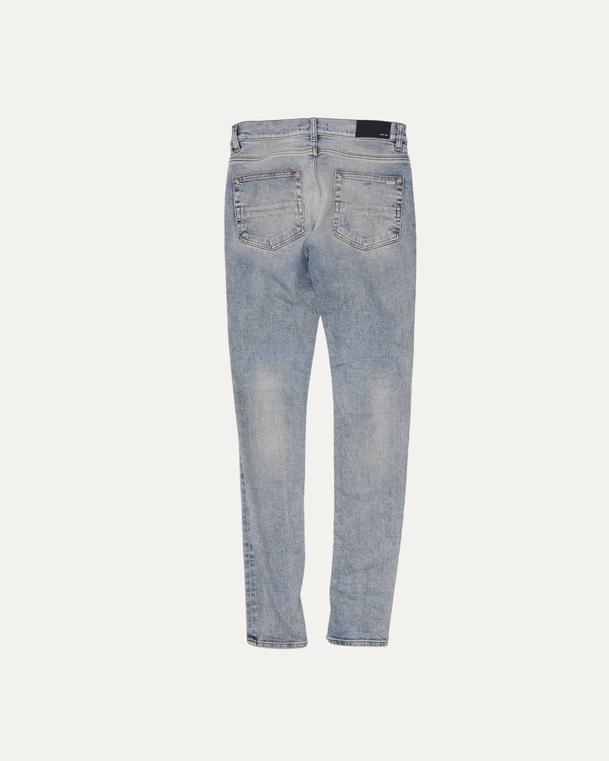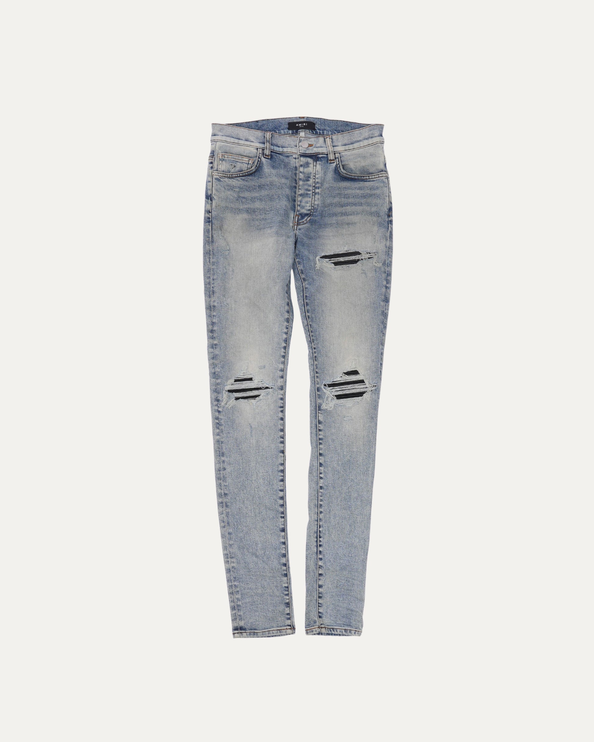 Acid Wash Jeans with Black Leather Biker Repairs