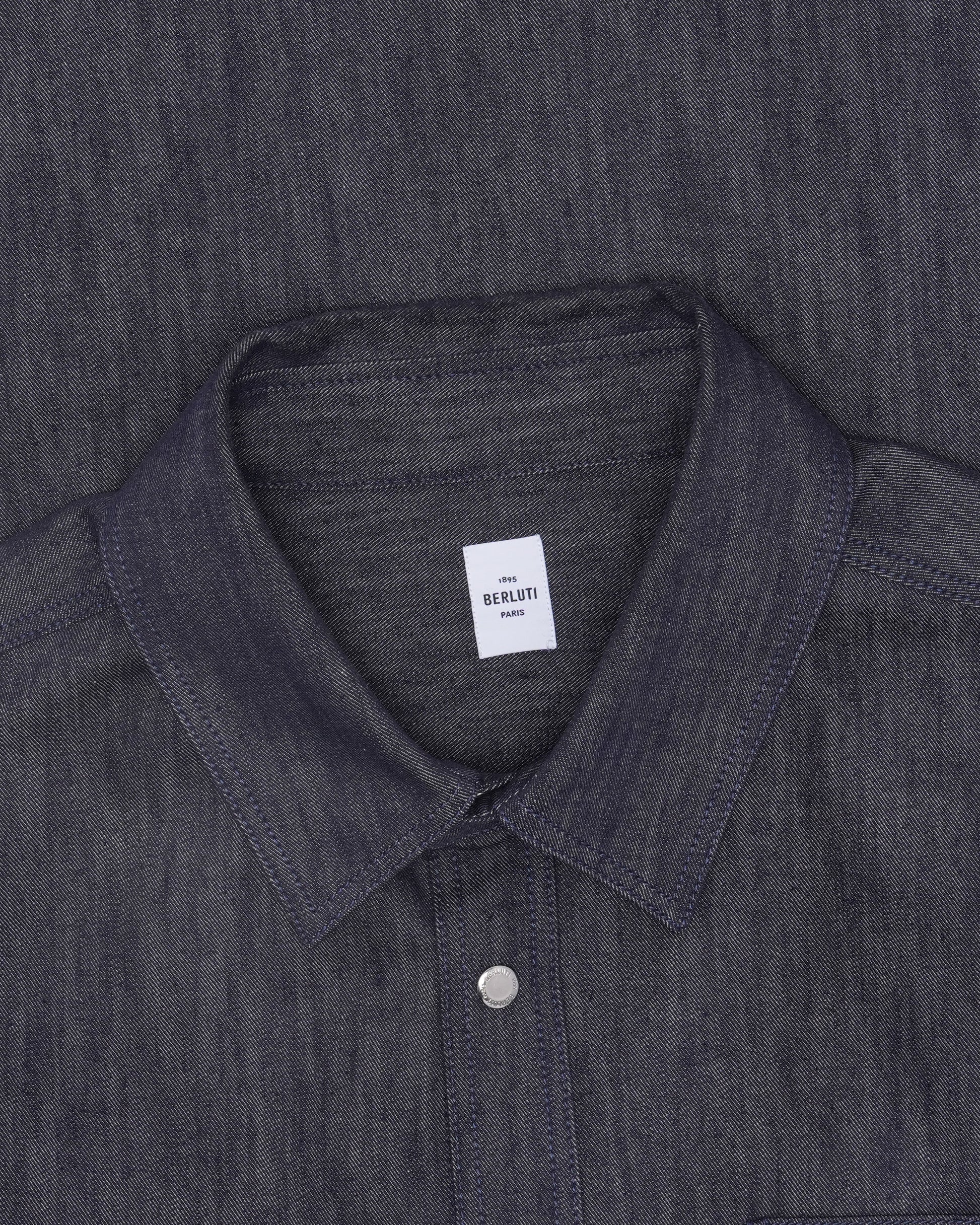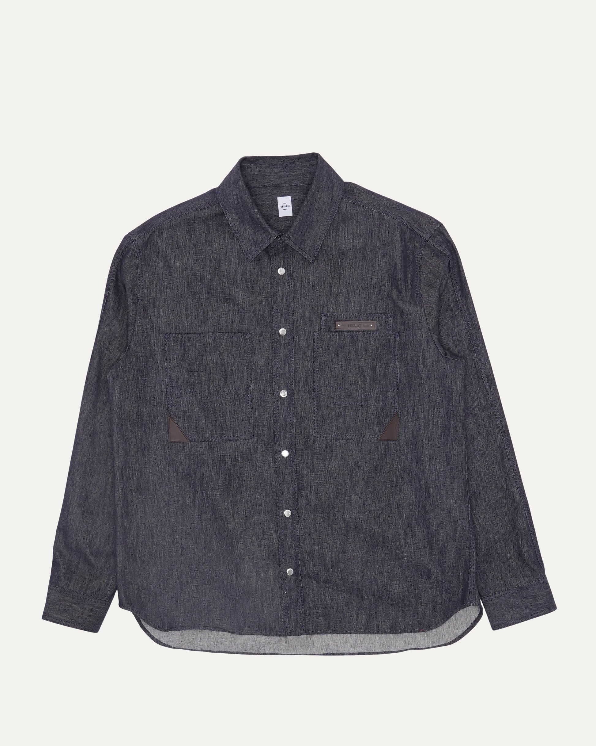 Leather Appliqué Cotton-Cashmere Blend Denim Shirt