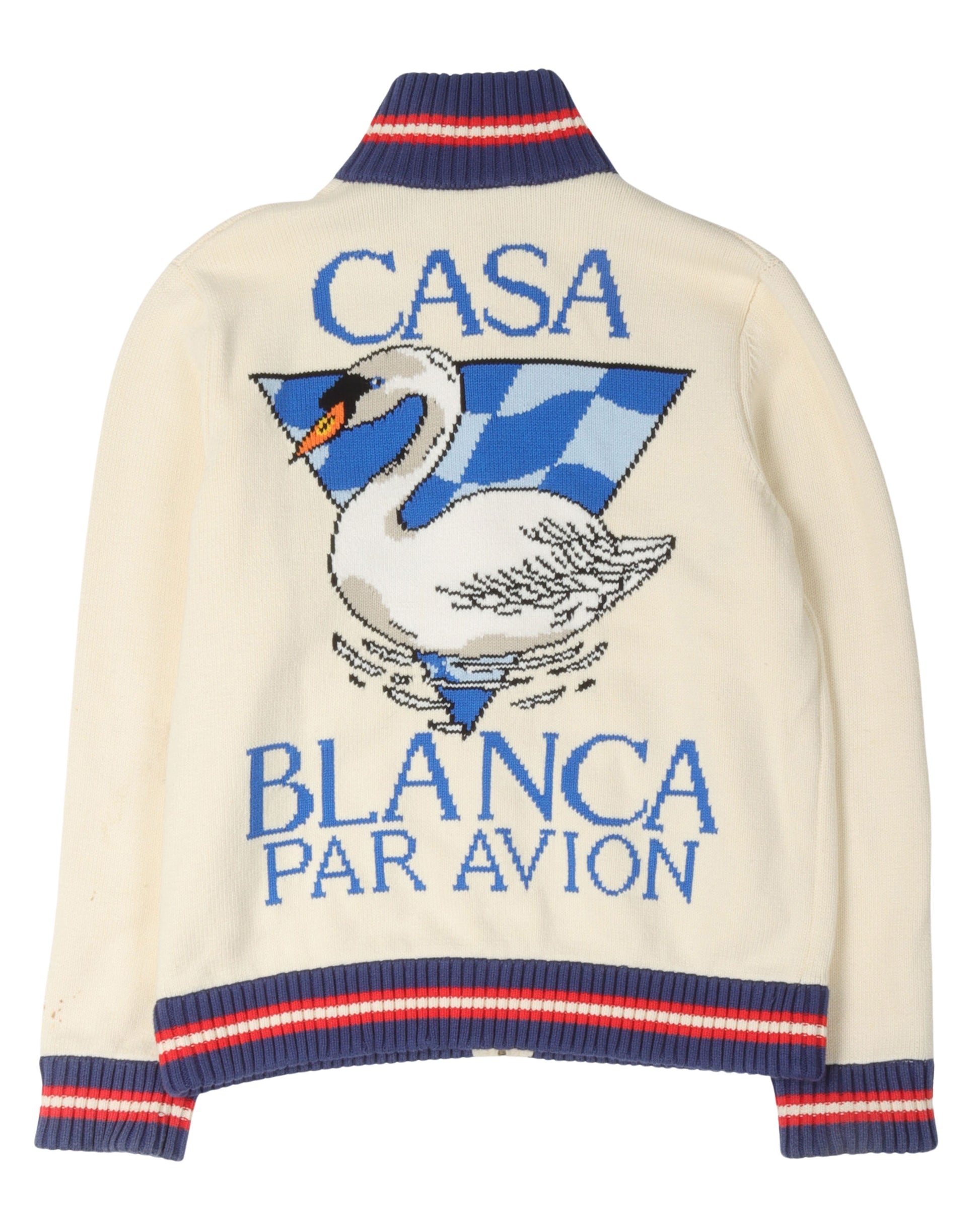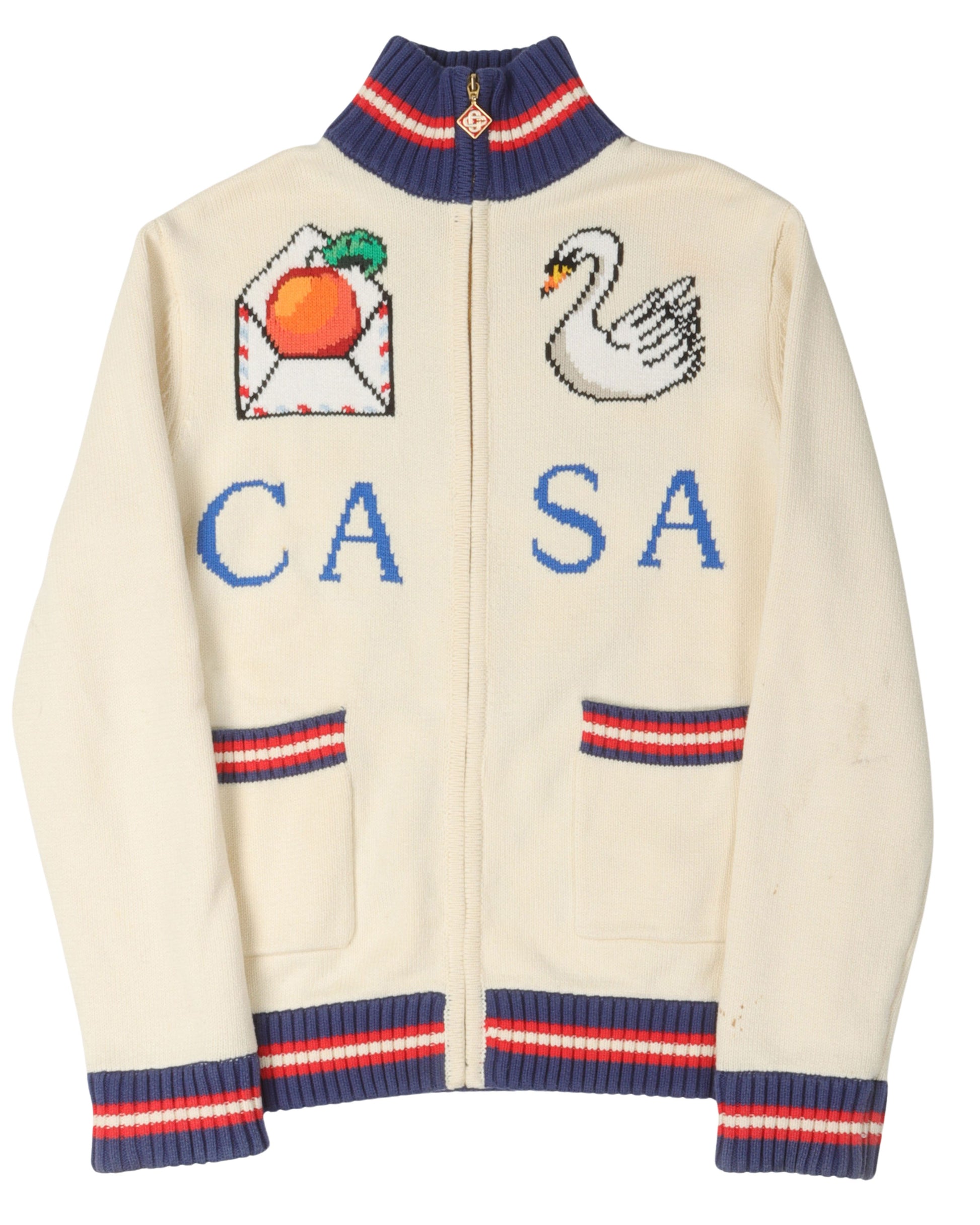 Roll Neck Intarsia Knit Cardigan