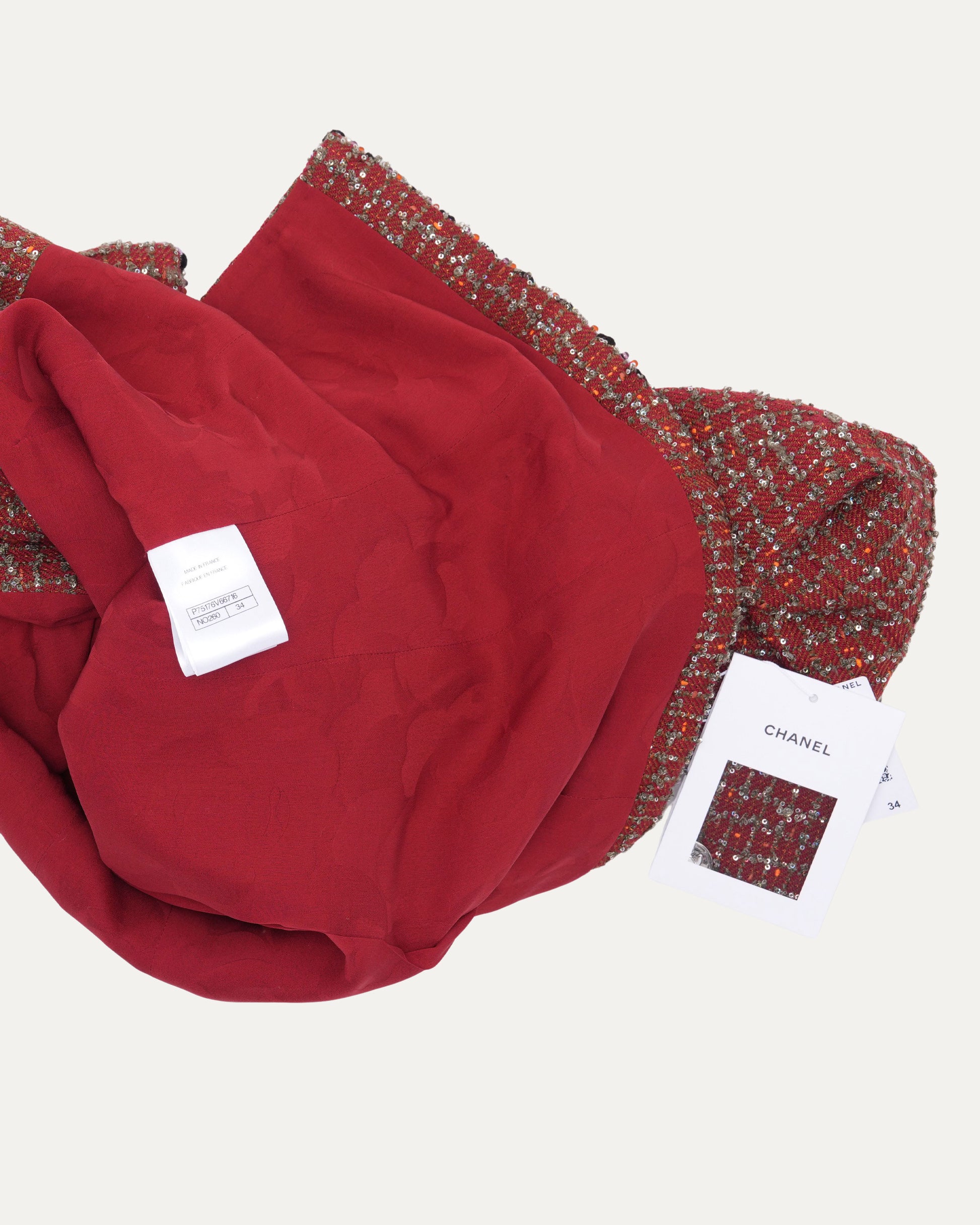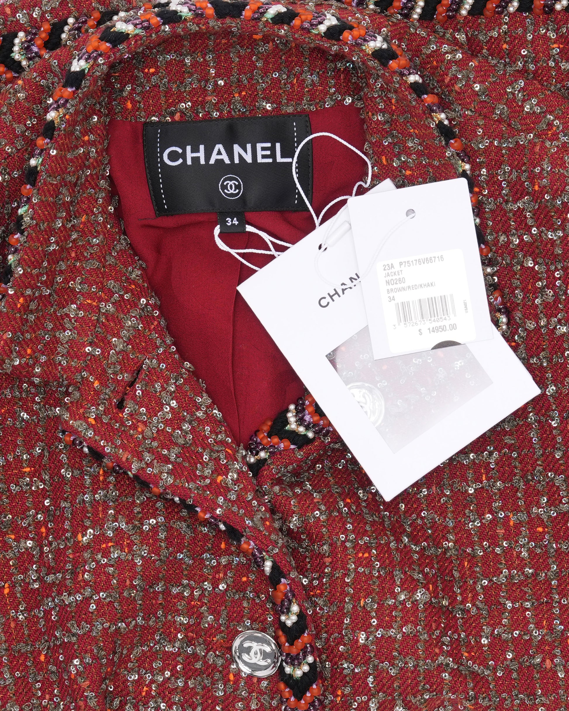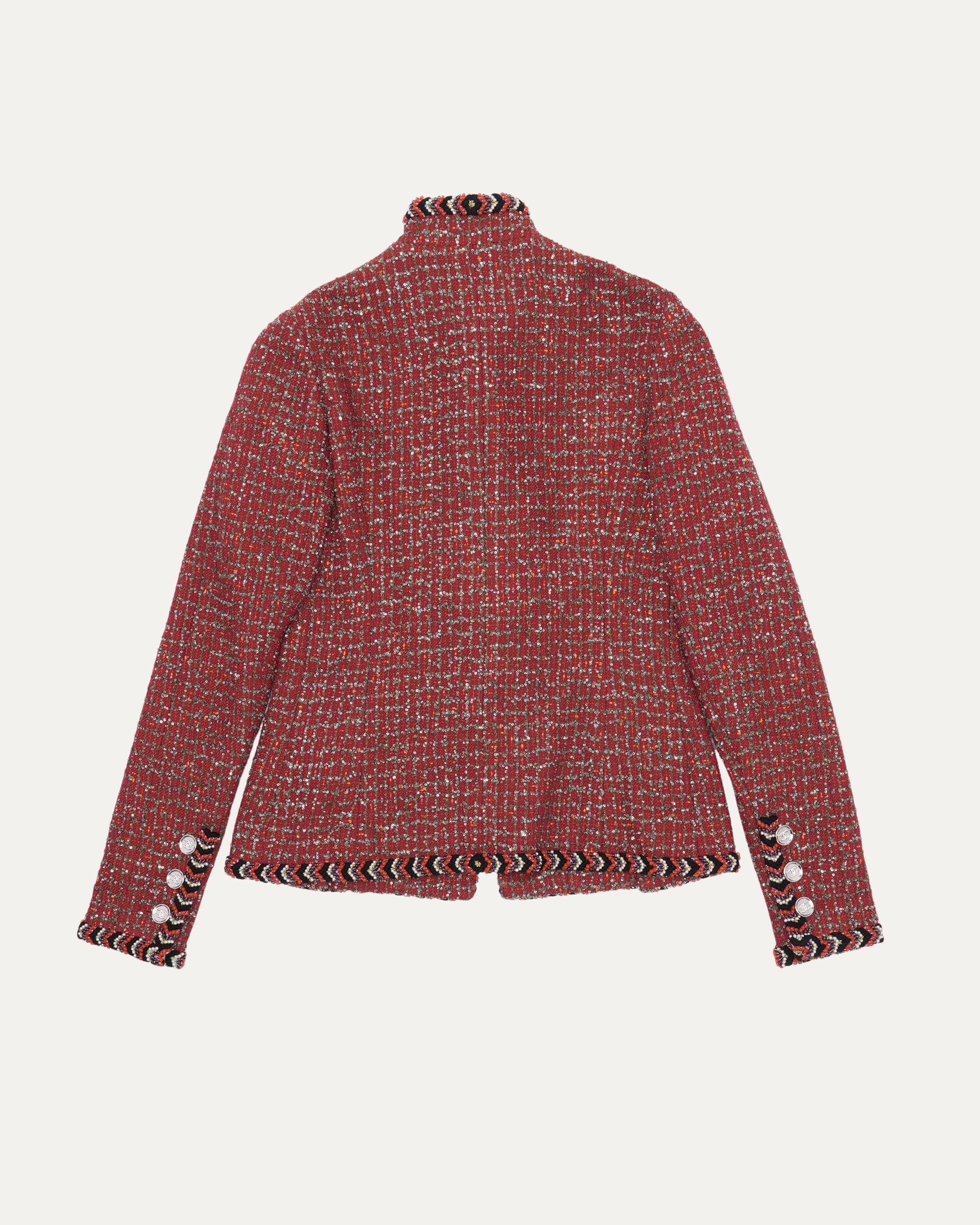 Chevron Bead Trim Sequin Tweed Jacket