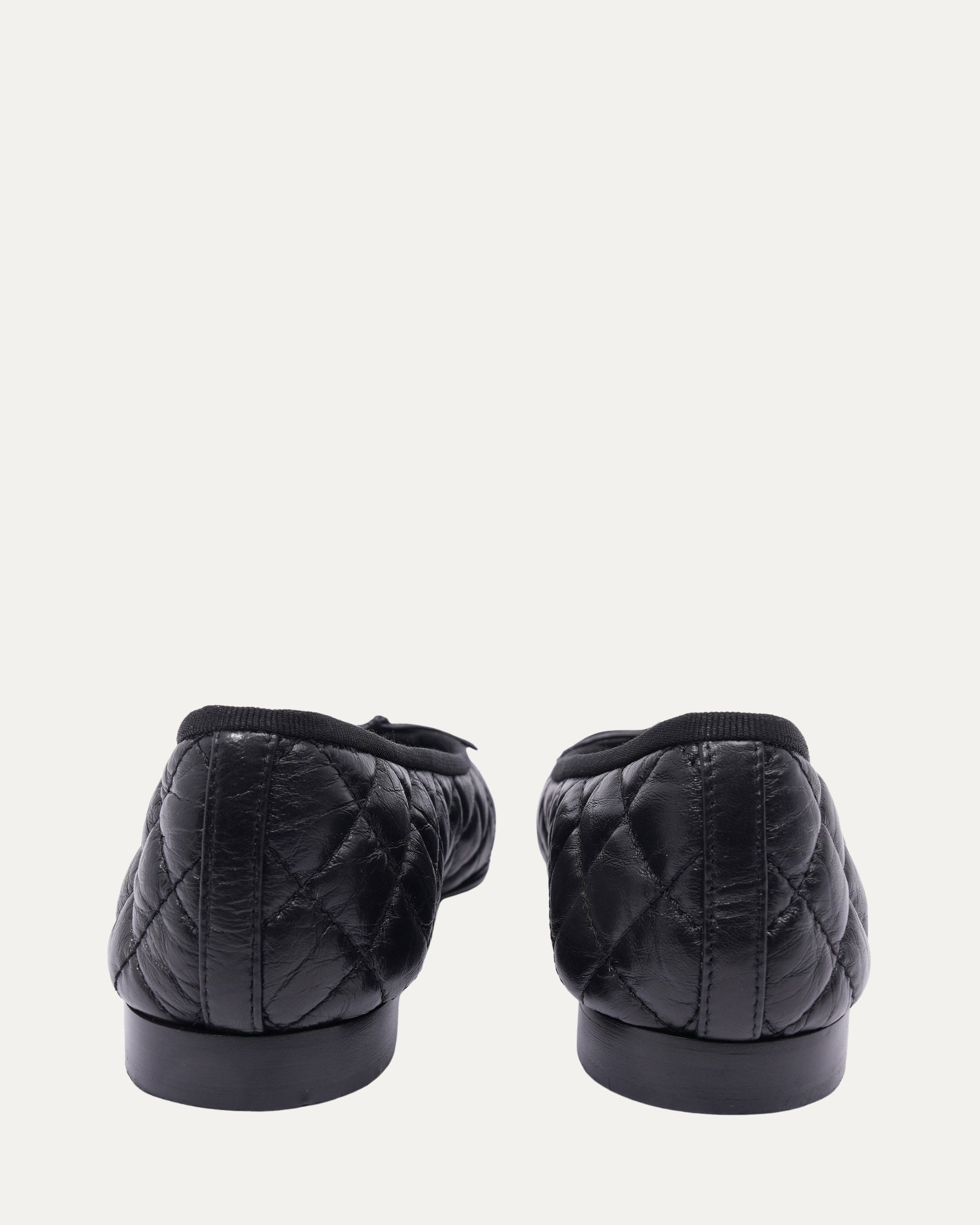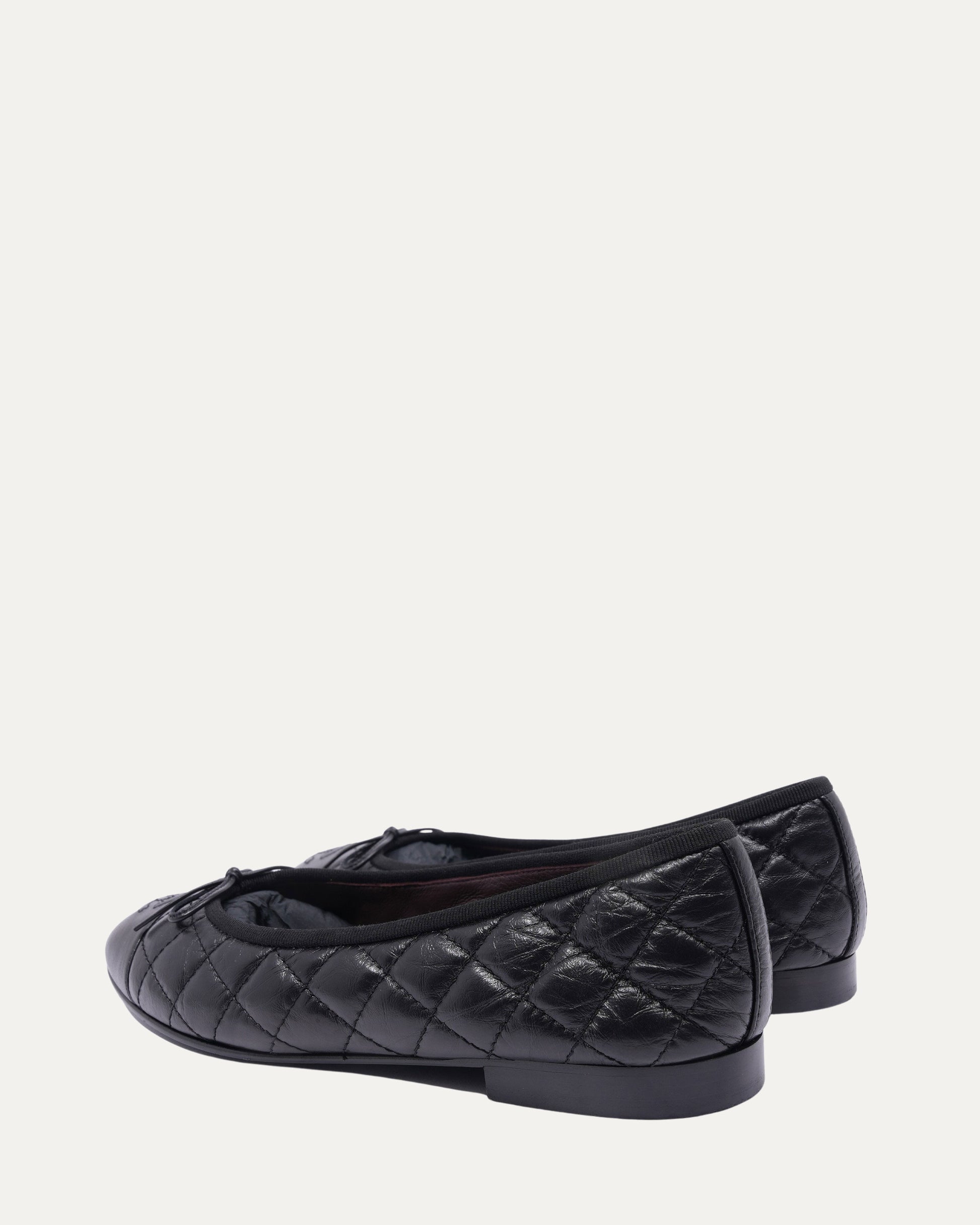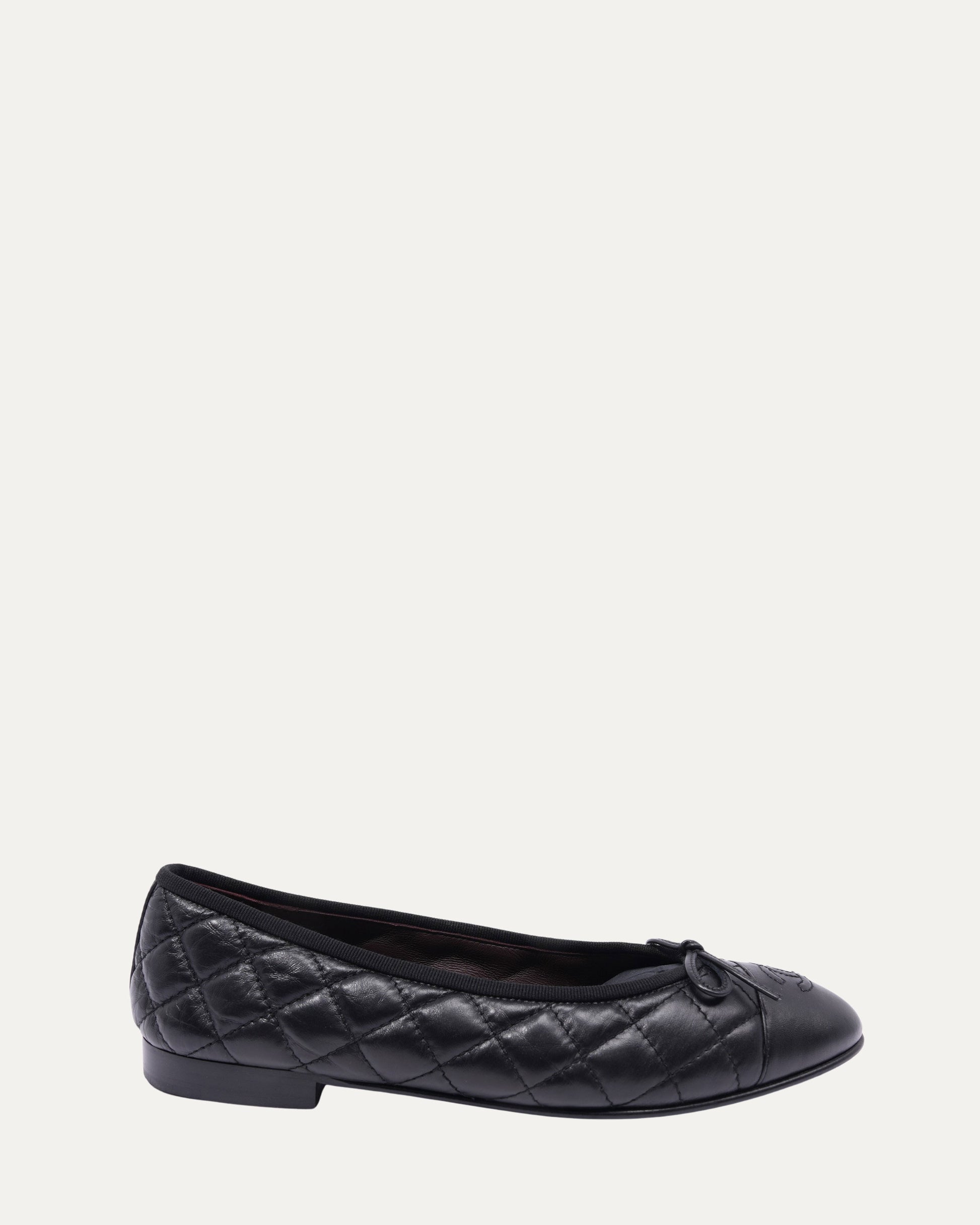 Leather Quilted Cap Toe Ballerina Flats