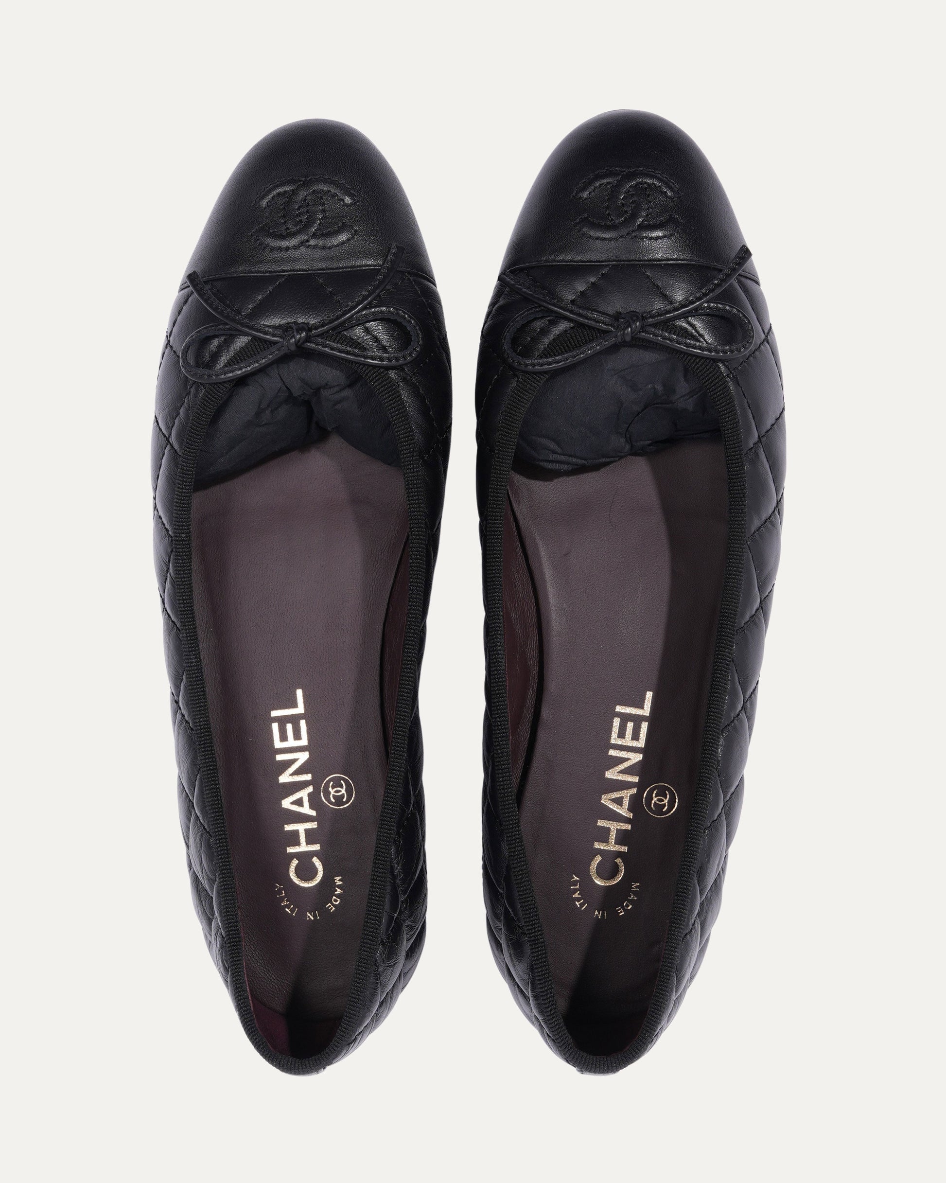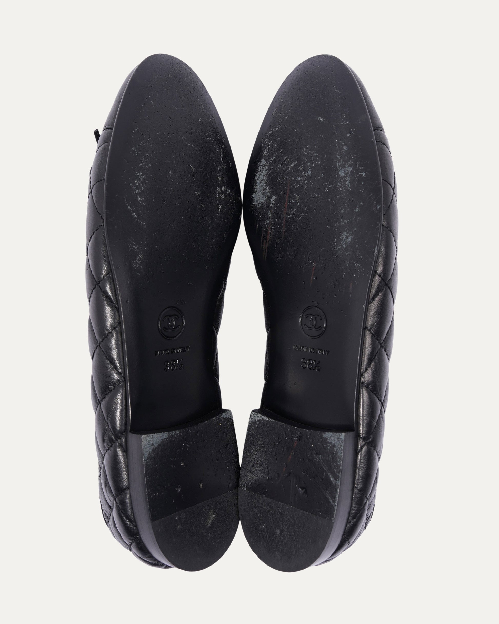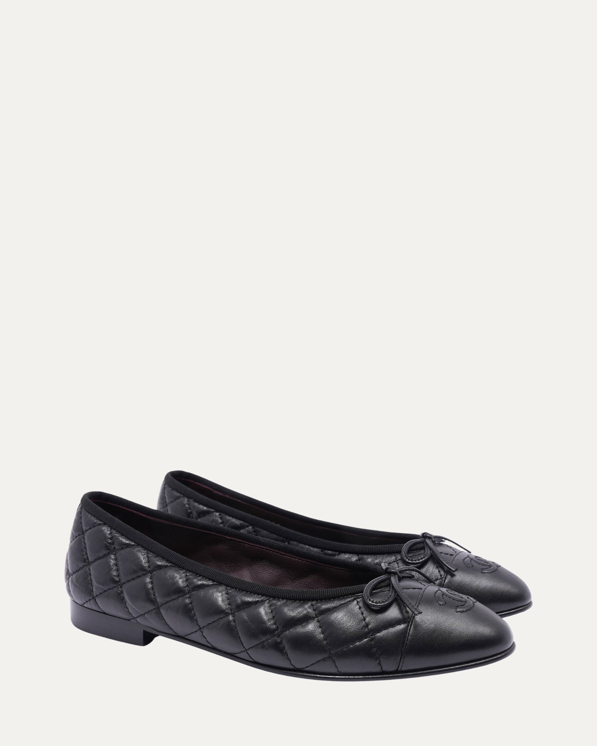 Leather Quilted Cap Toe Ballerina Flats