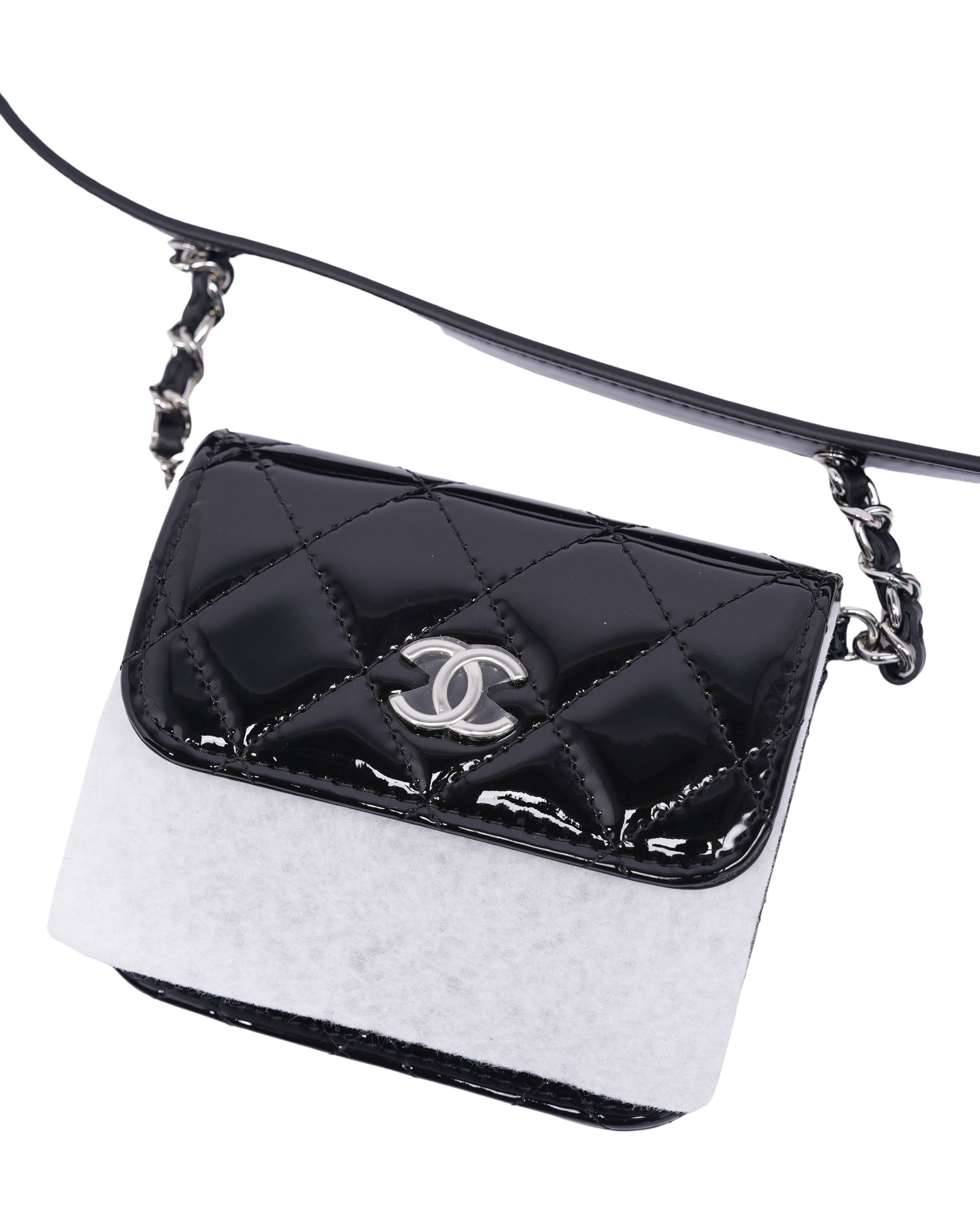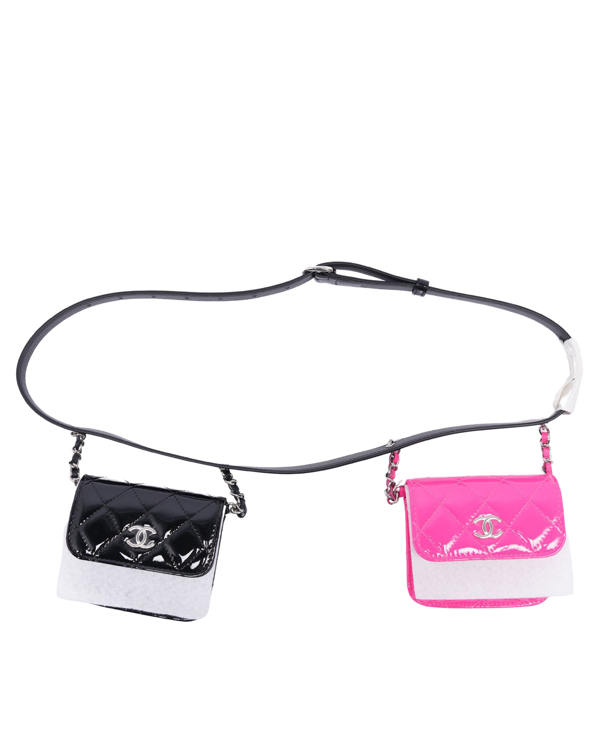 Quilted Patent Leather Double Mini Flap Waist Bag