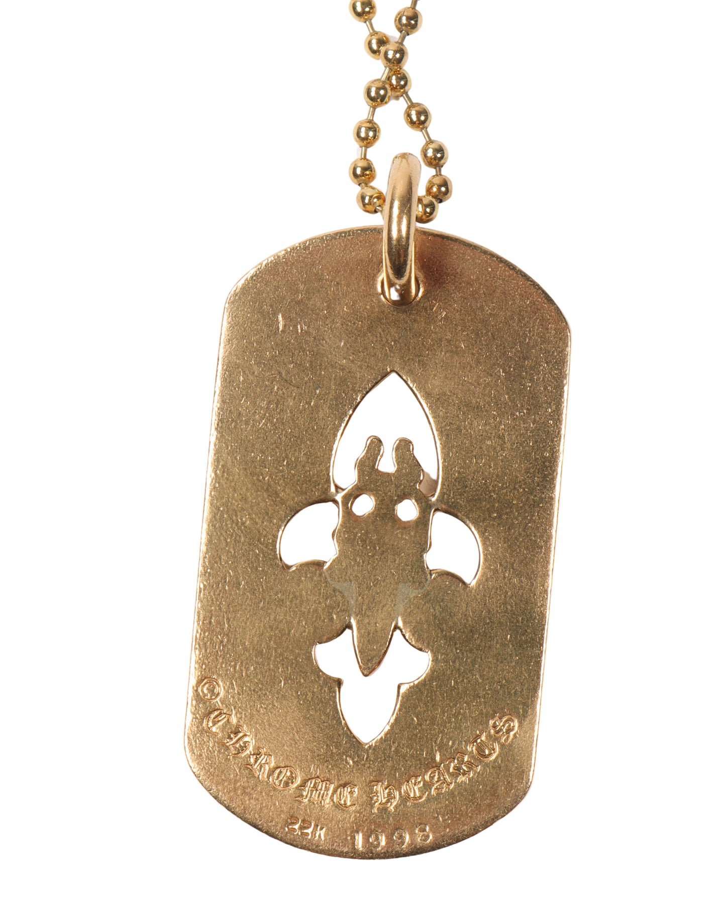 22k Gold & Diamond Fleur Cross Dog Tag Pendant w/ Chain