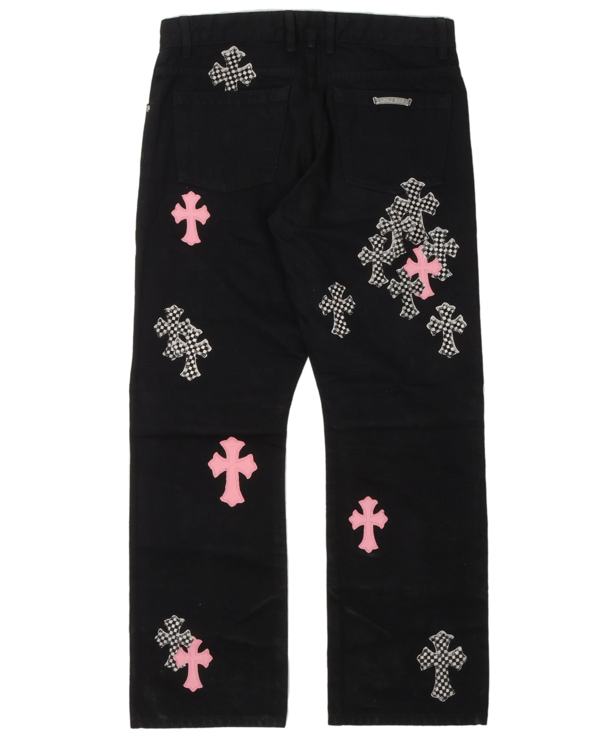Checkered Cross Patch Fleur-Knee Jeans w/ 35 Cross Patches
