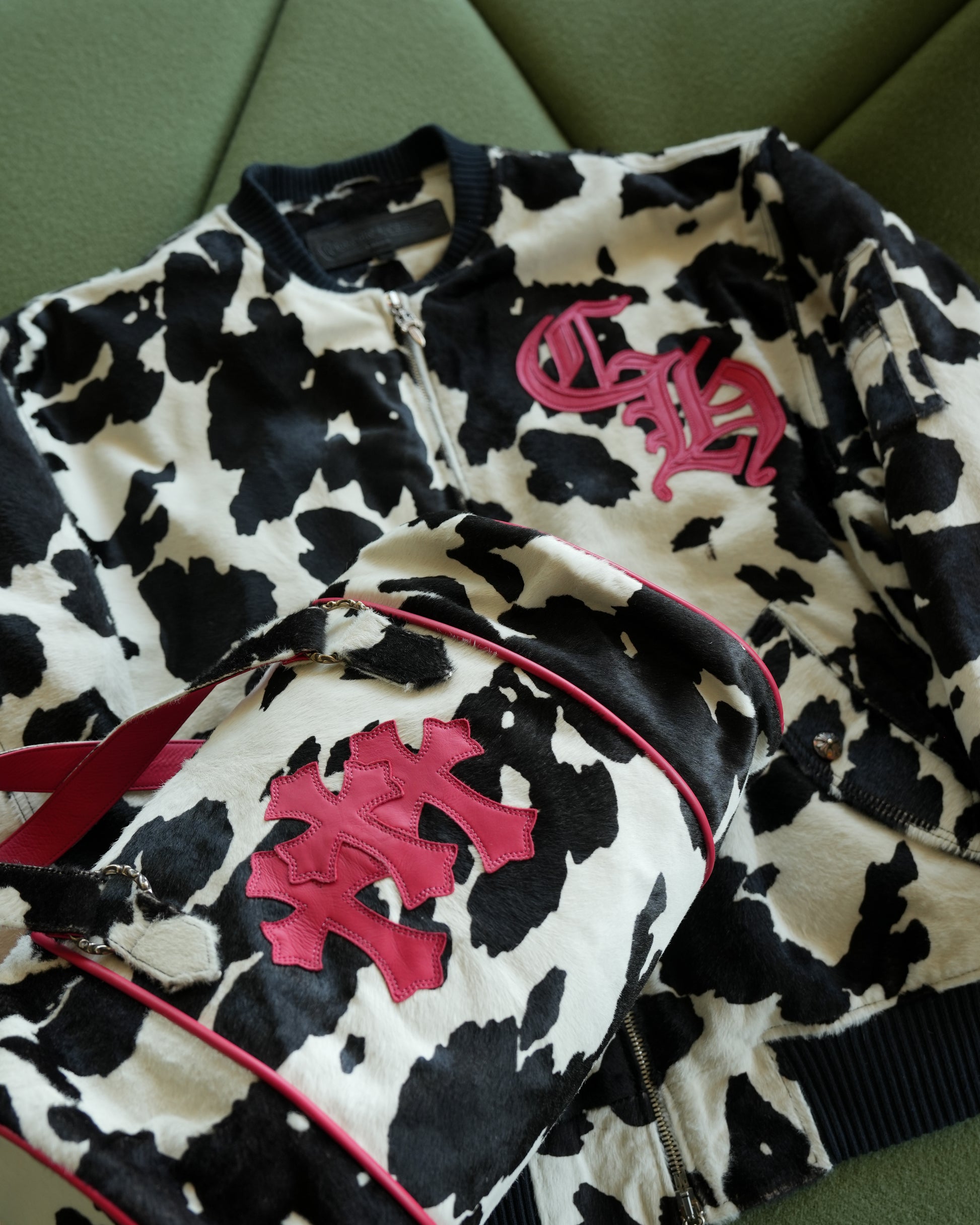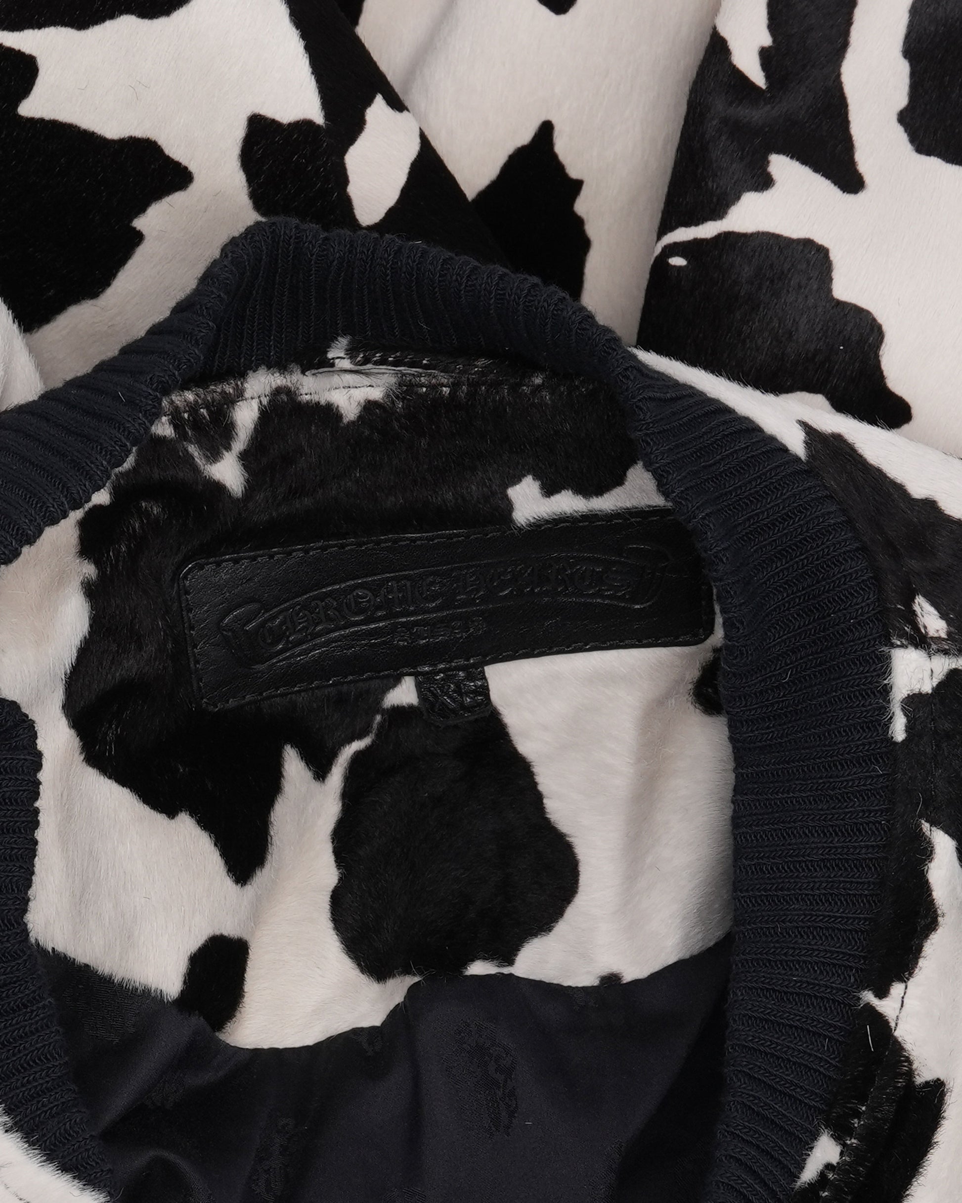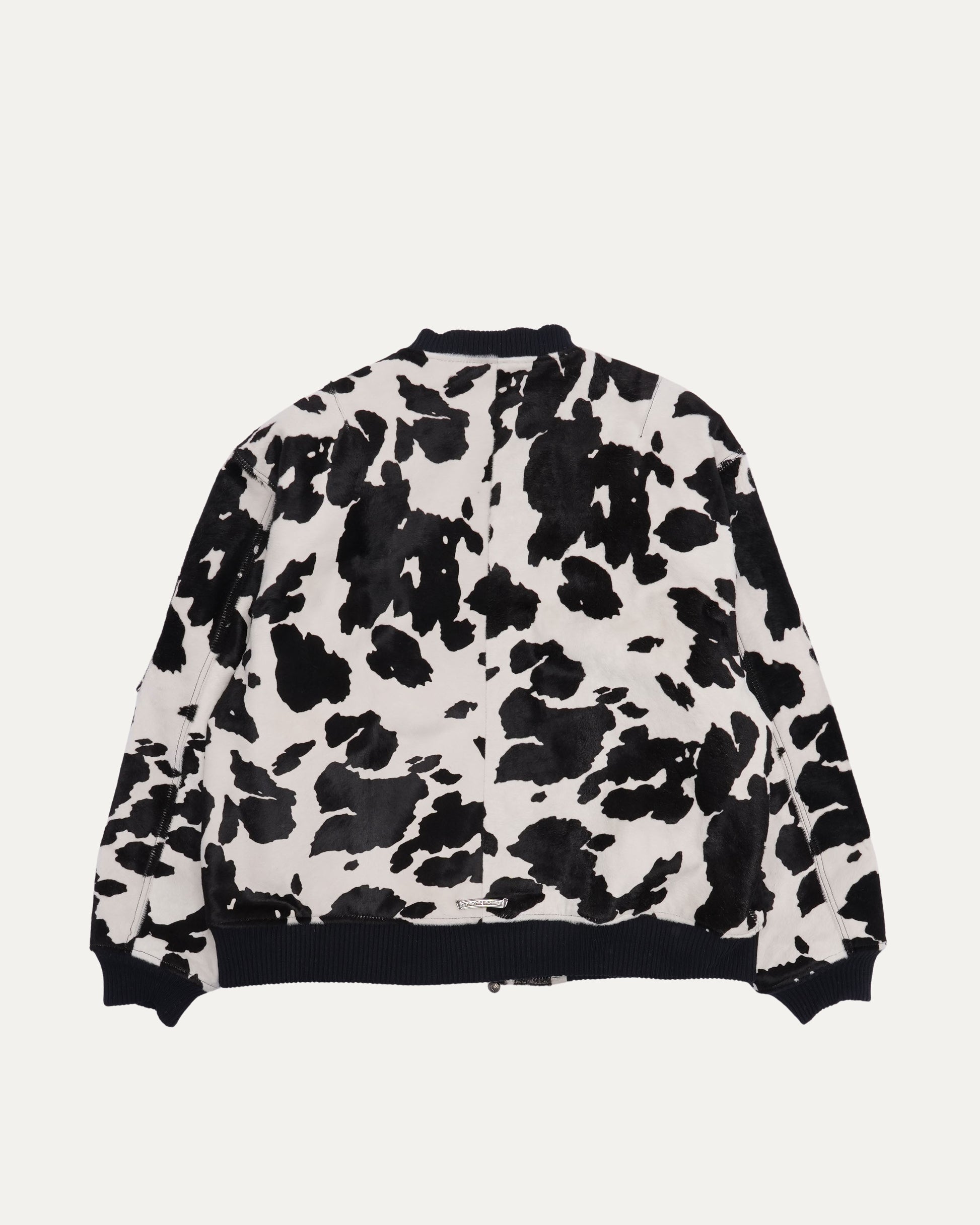 Cow Print Pony Hair Leather Bomber Jacket