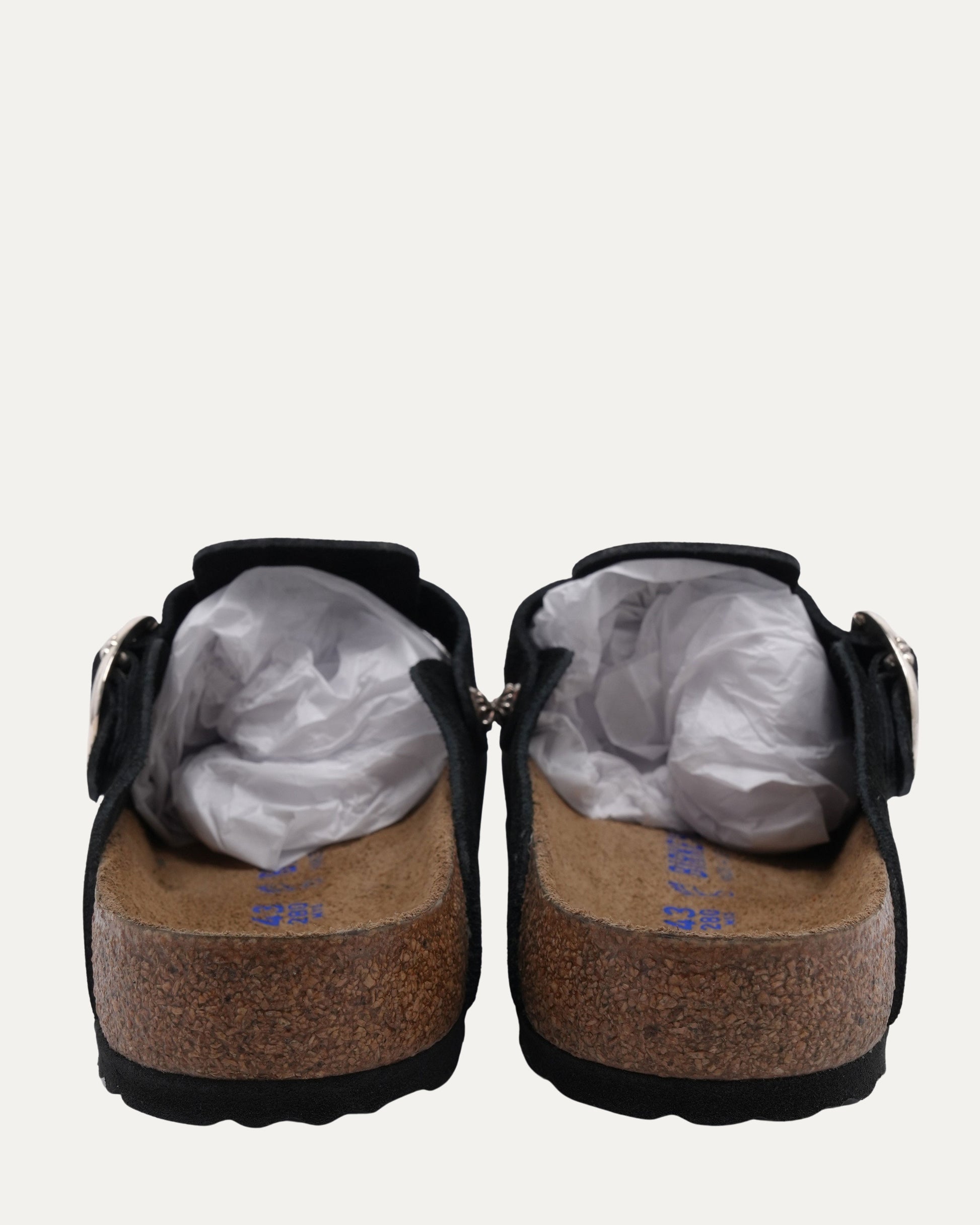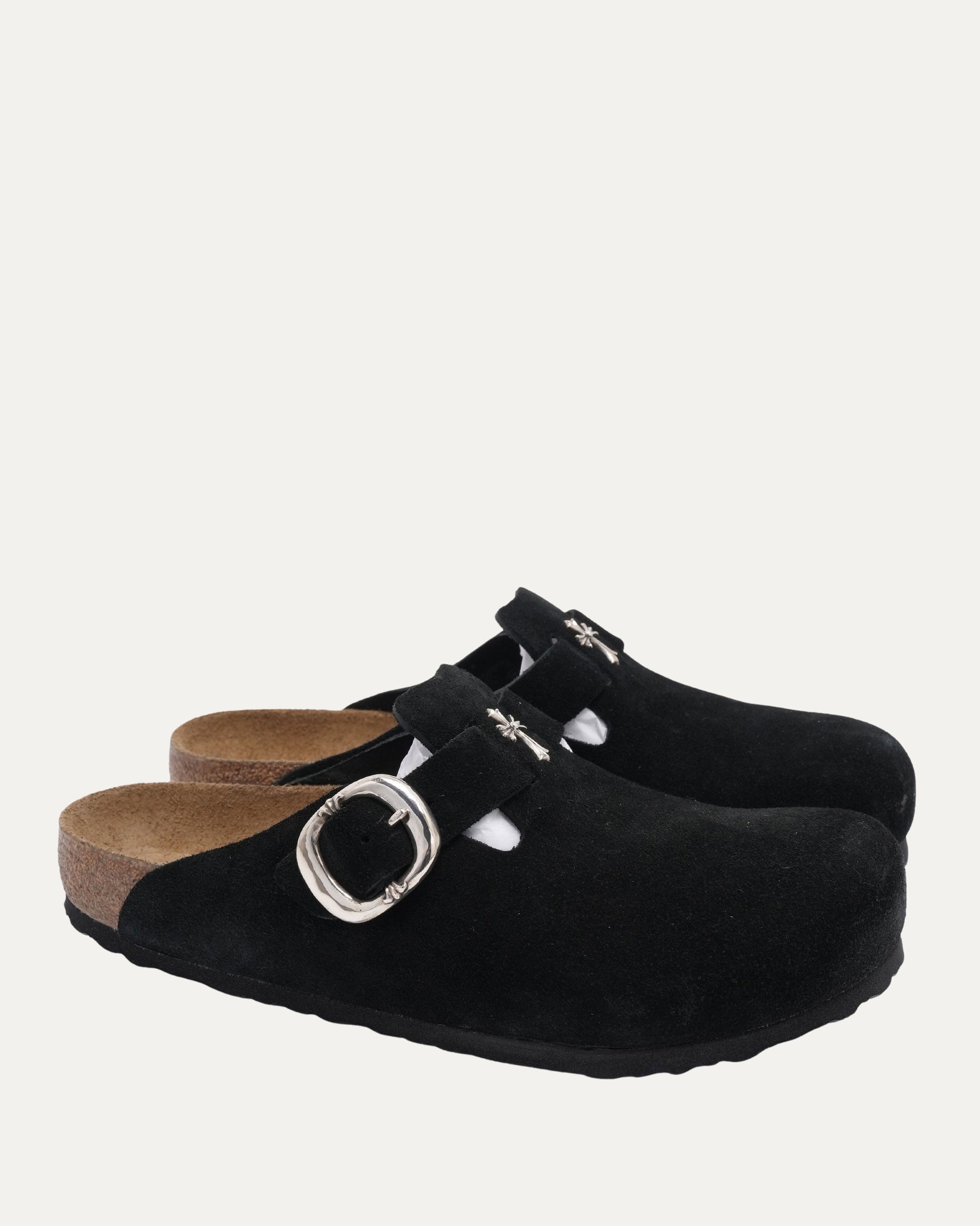 Cross Embellished Birkenstock Boston Suede Mule