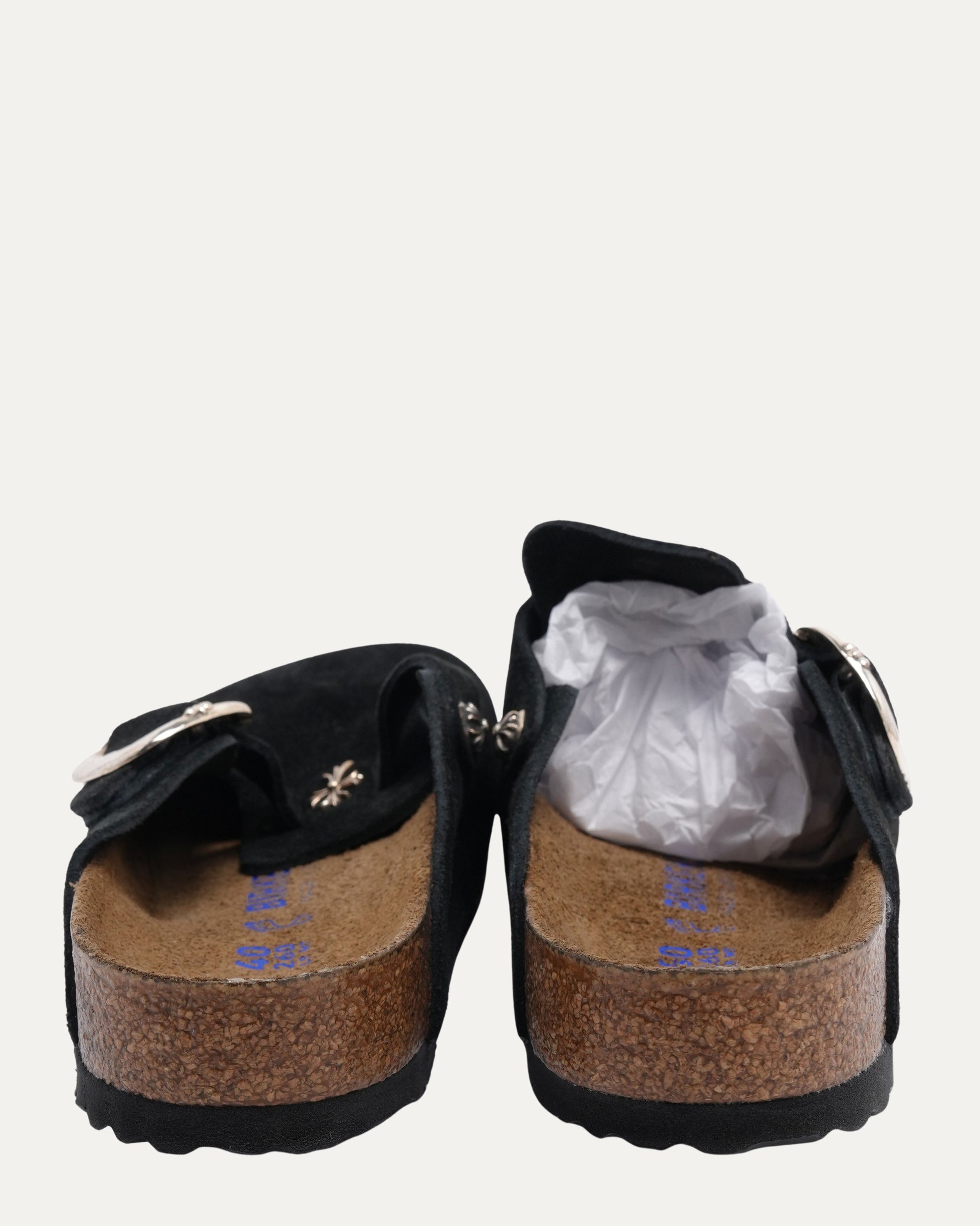 Cross Embellished Birkenstock Boston Suede Mule