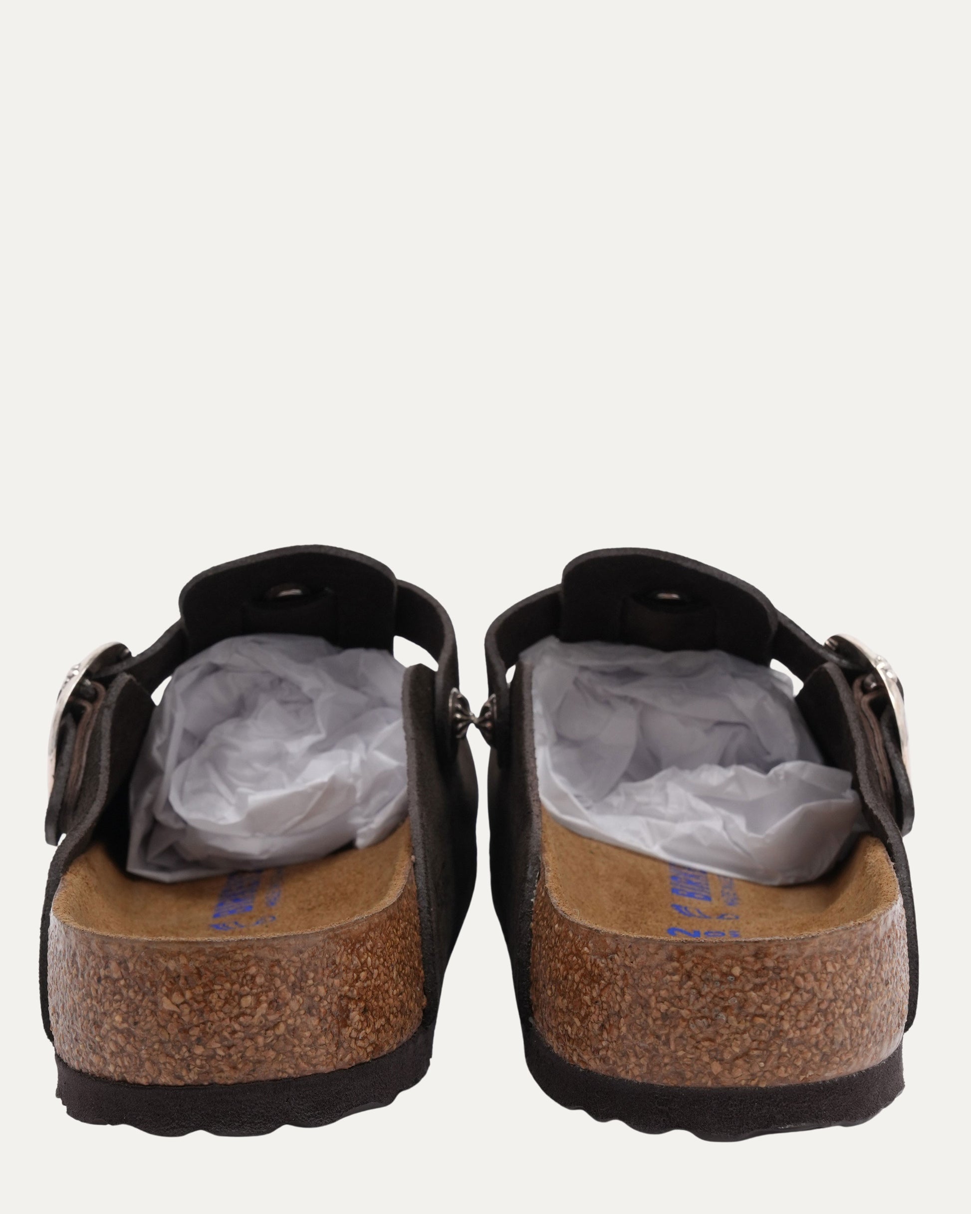Cross Embellished Birkenstock Boston Suede Mule