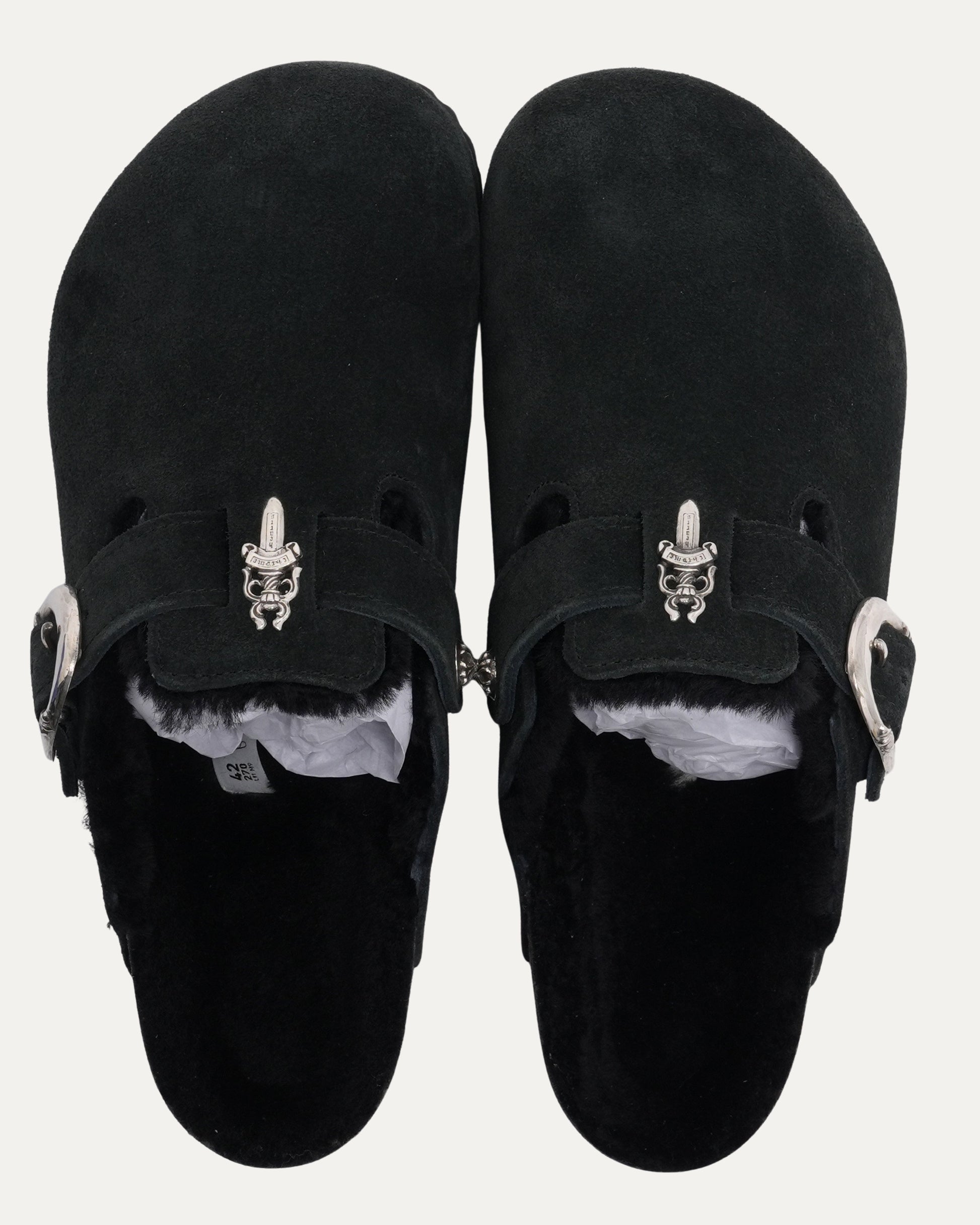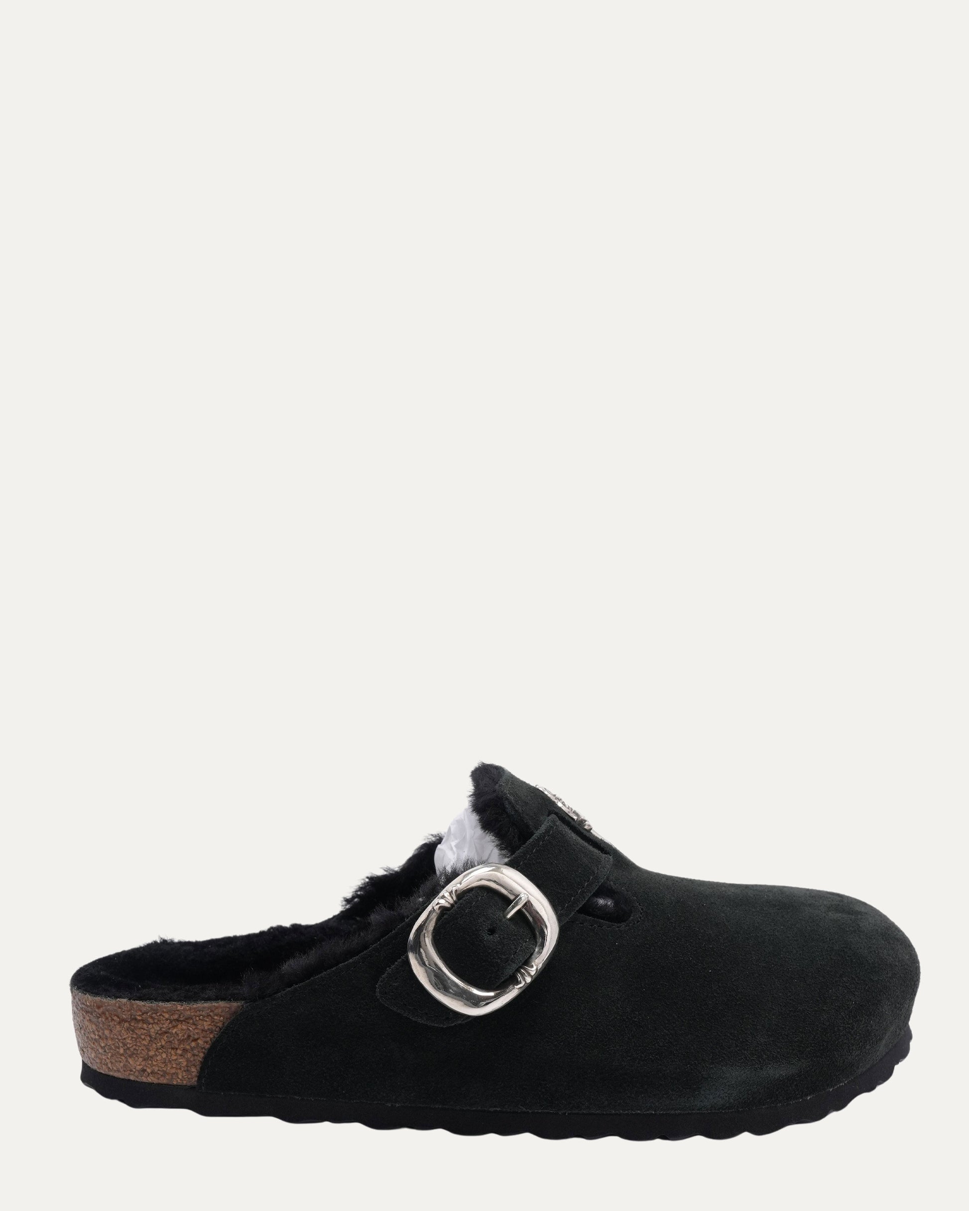 Dagger Embellished Shearling Lined Birkenstock Boston Suede Mule