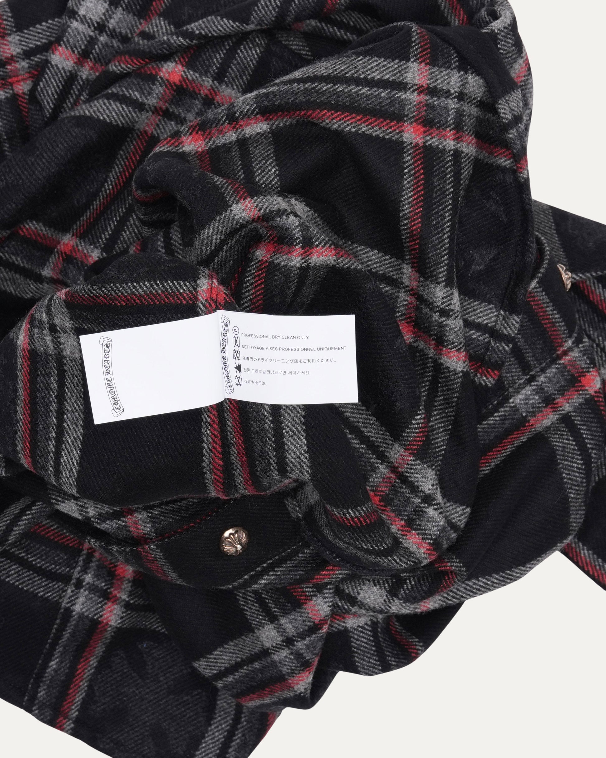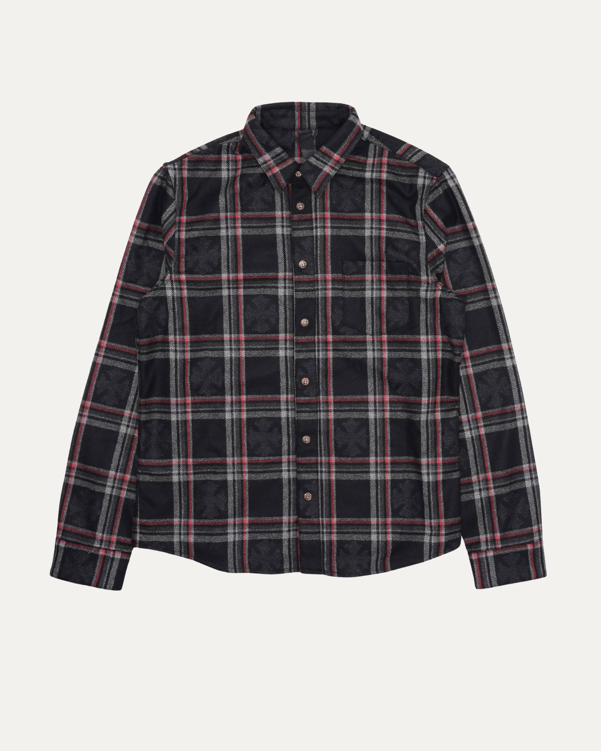 Gas Station Plaid Cashmere Cross Patch Loose Ends Flannel Shirt