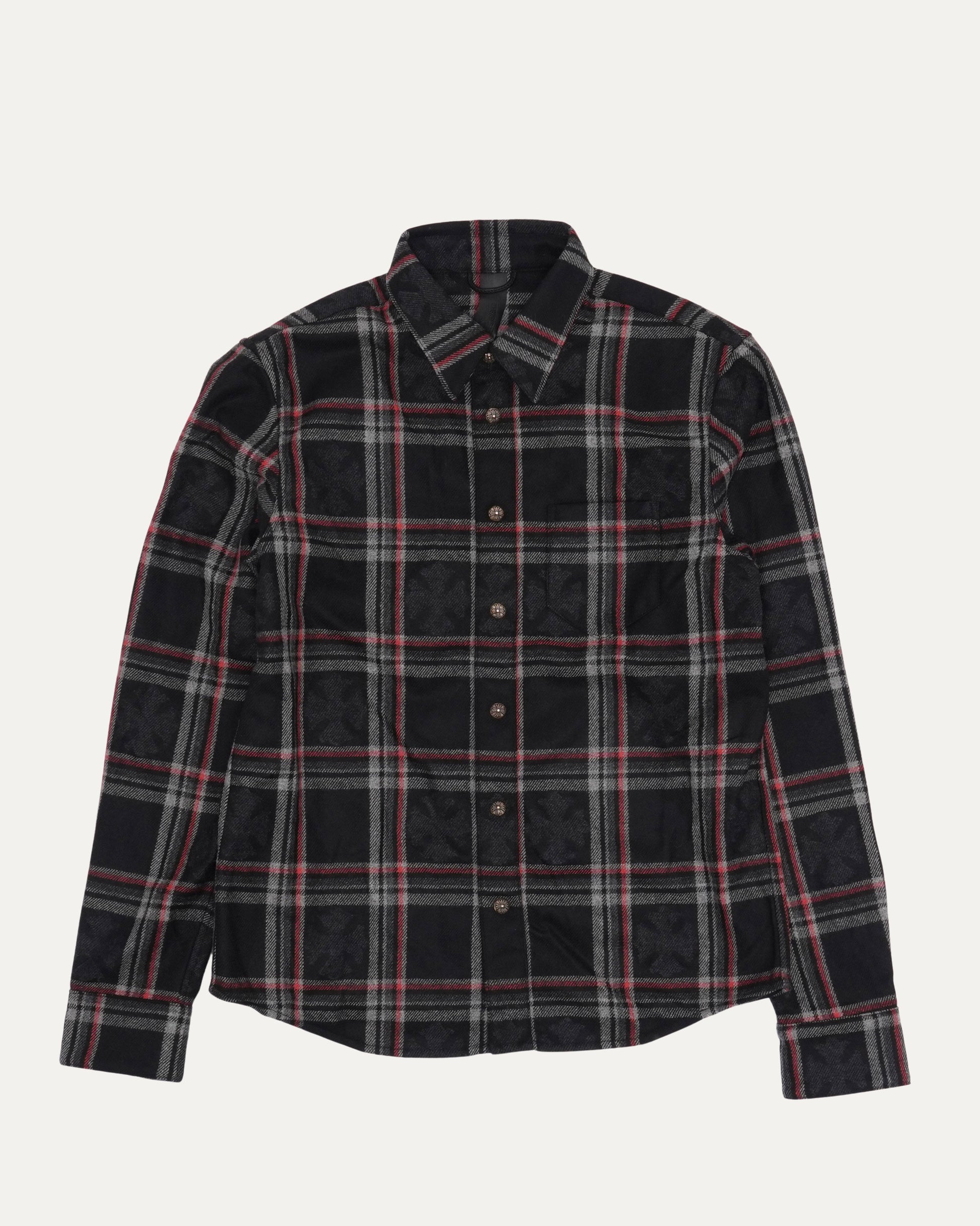 Gas Station Plaid Cashmere Cross Patch Loose Ends Flannel Shirt