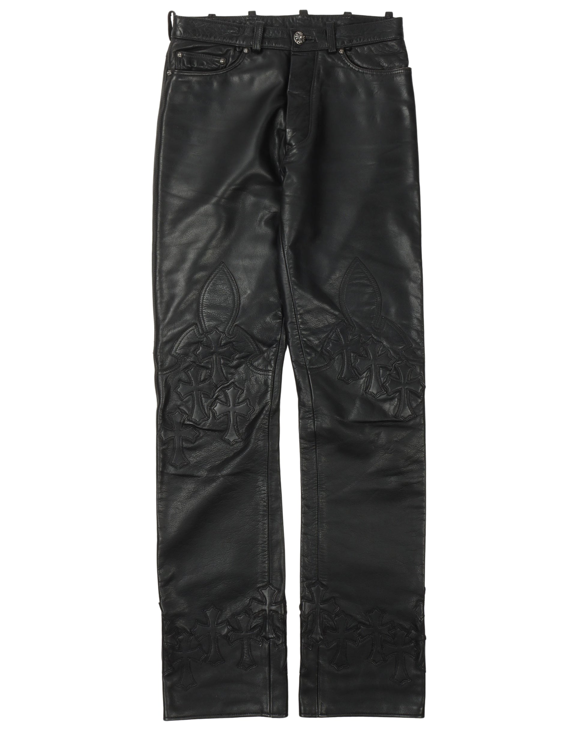 Leather Cross Leather Fleur Knee Pants