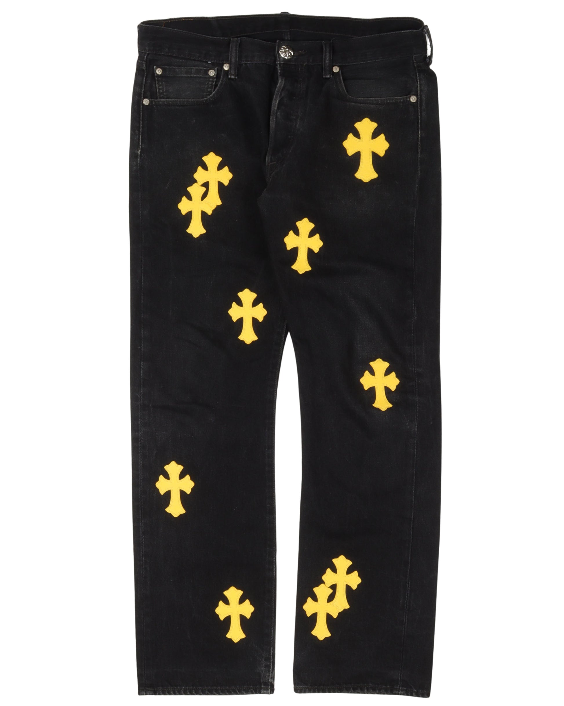 Leather Cross Patch Jeans