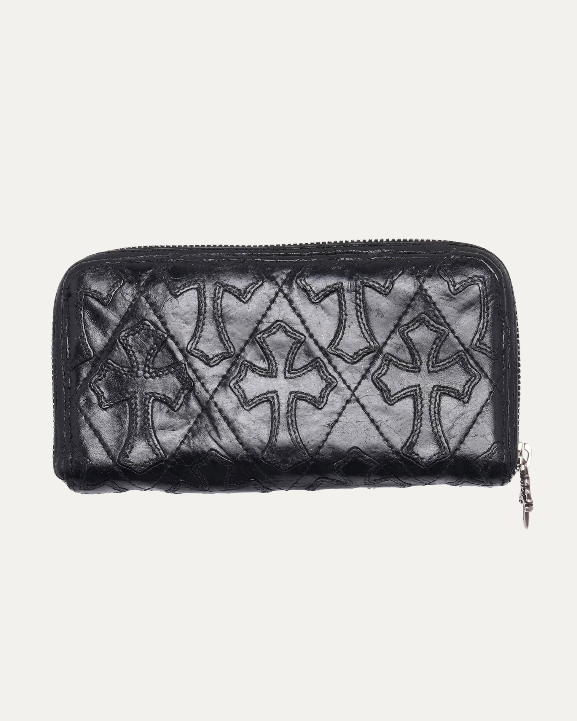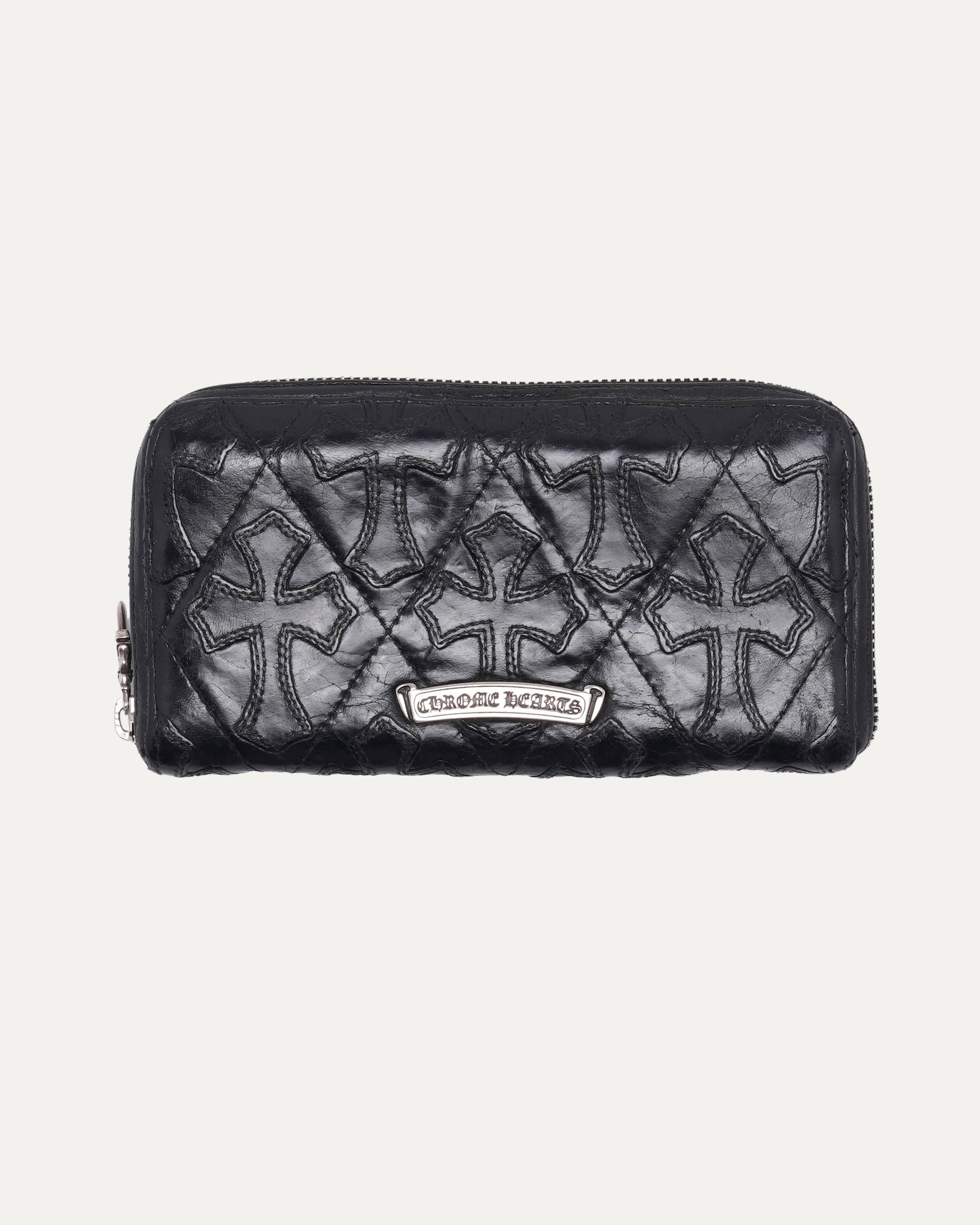 Quilted Cross Patch Long Zip Wallet