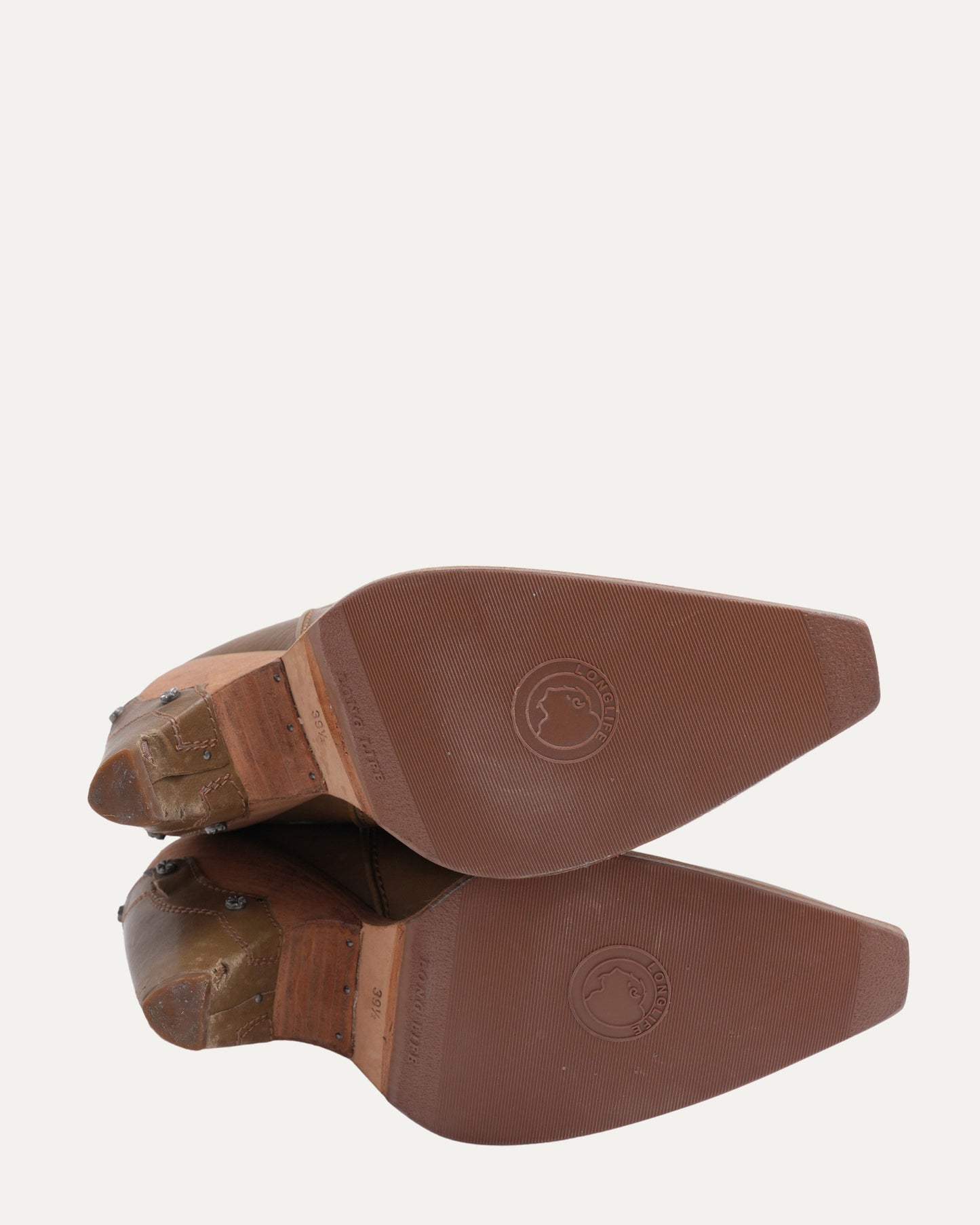 Good vintage condition with signs of wear, small rip in decorative leather on one heel. Please review all pictures for details.