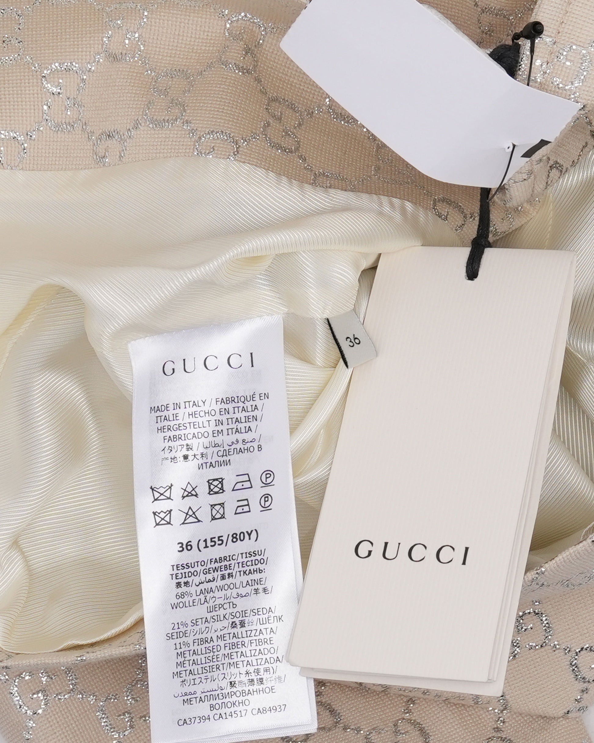 Fabric: 68% Wool / 21% Silk / 11% Metallized Fiber