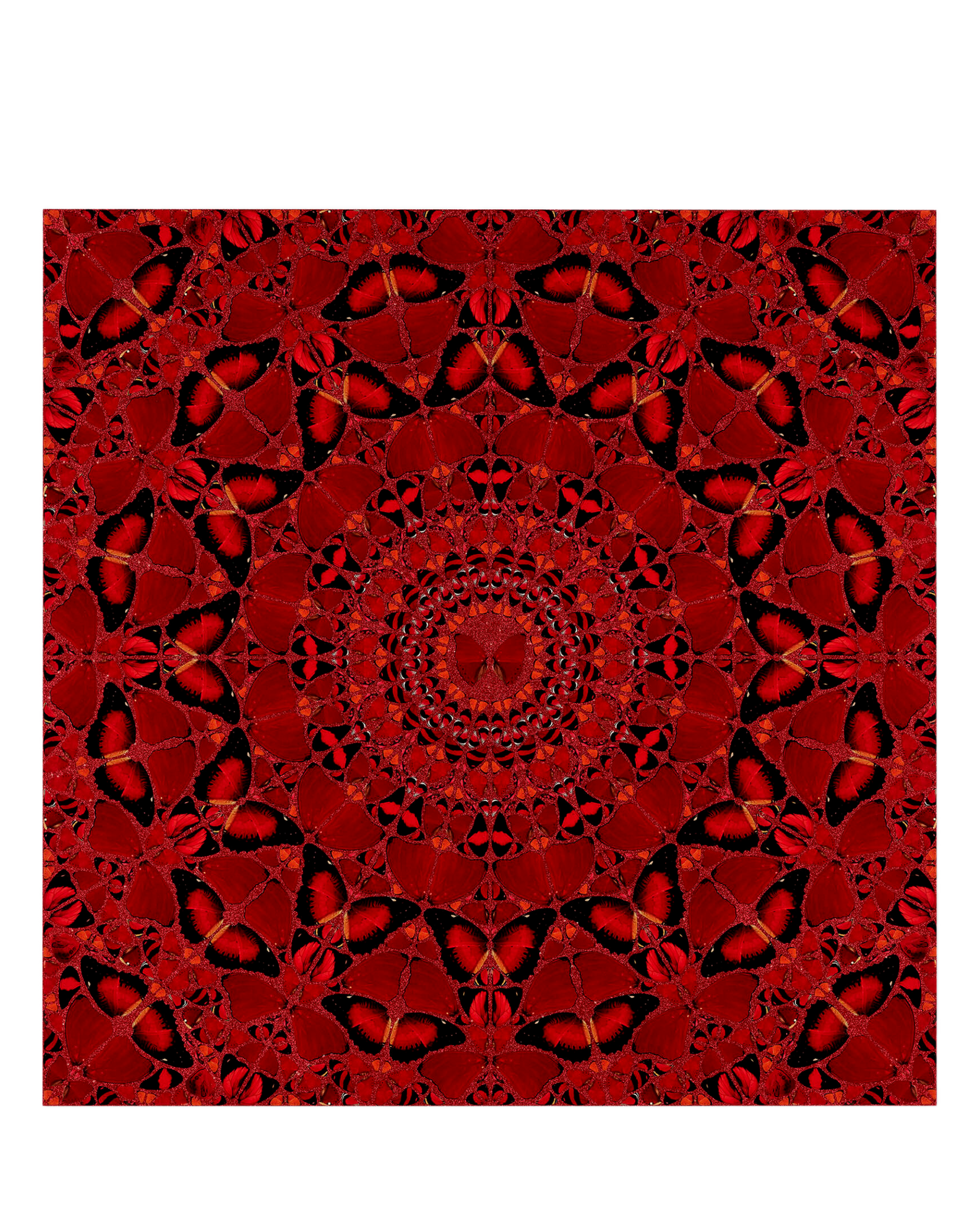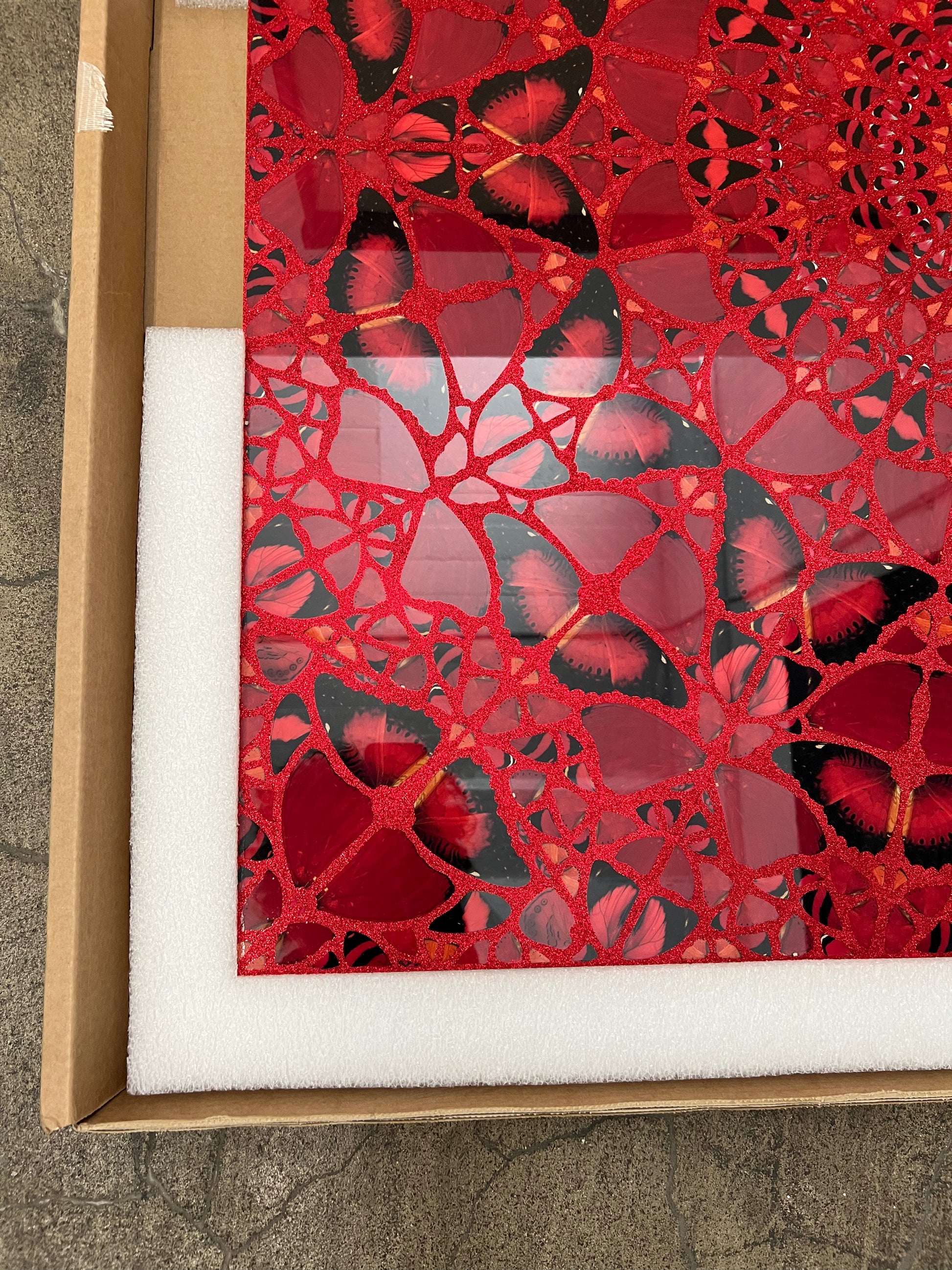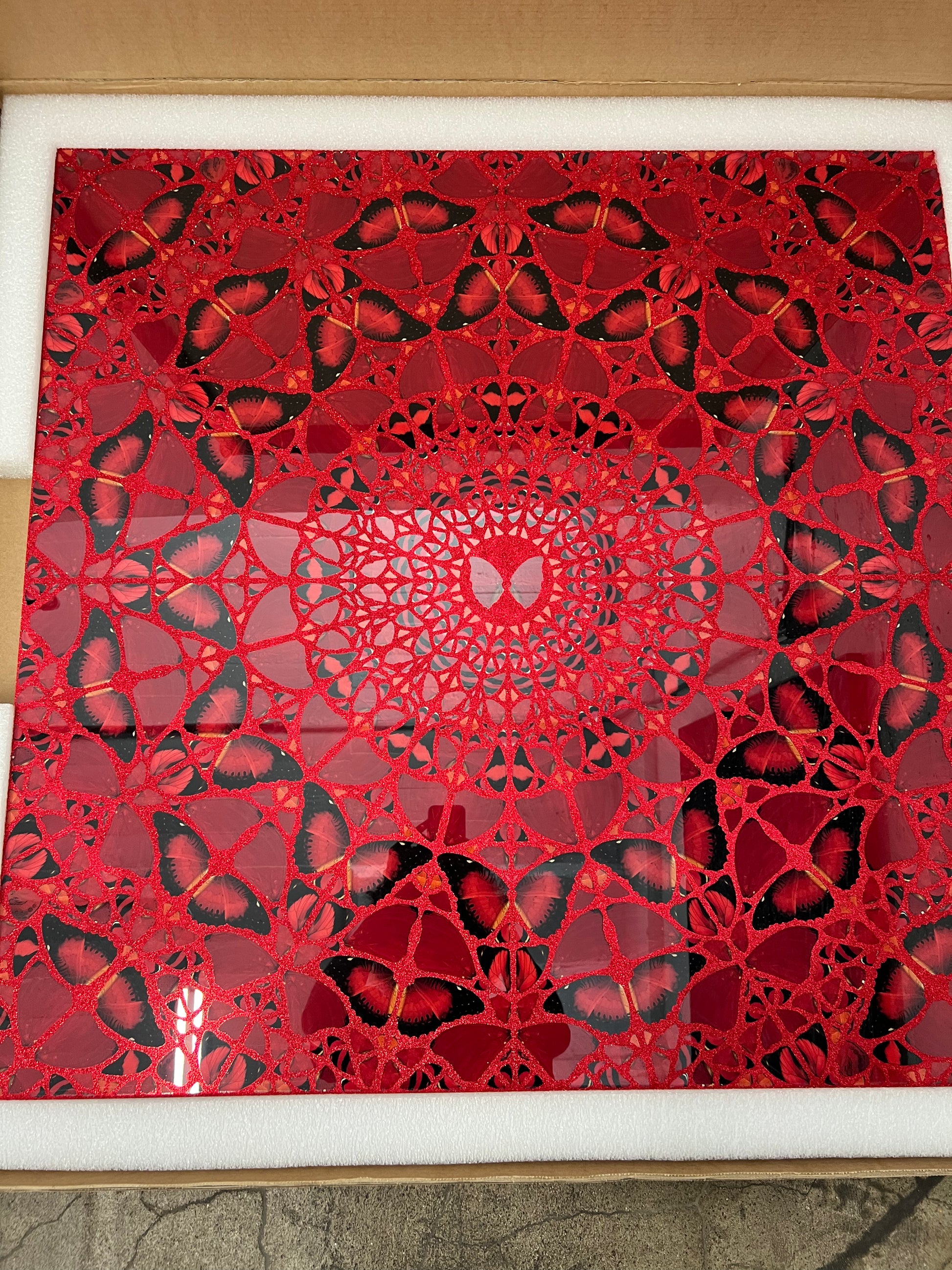 Laminated giclée print on aluminum composite panel screenprinted with glitter