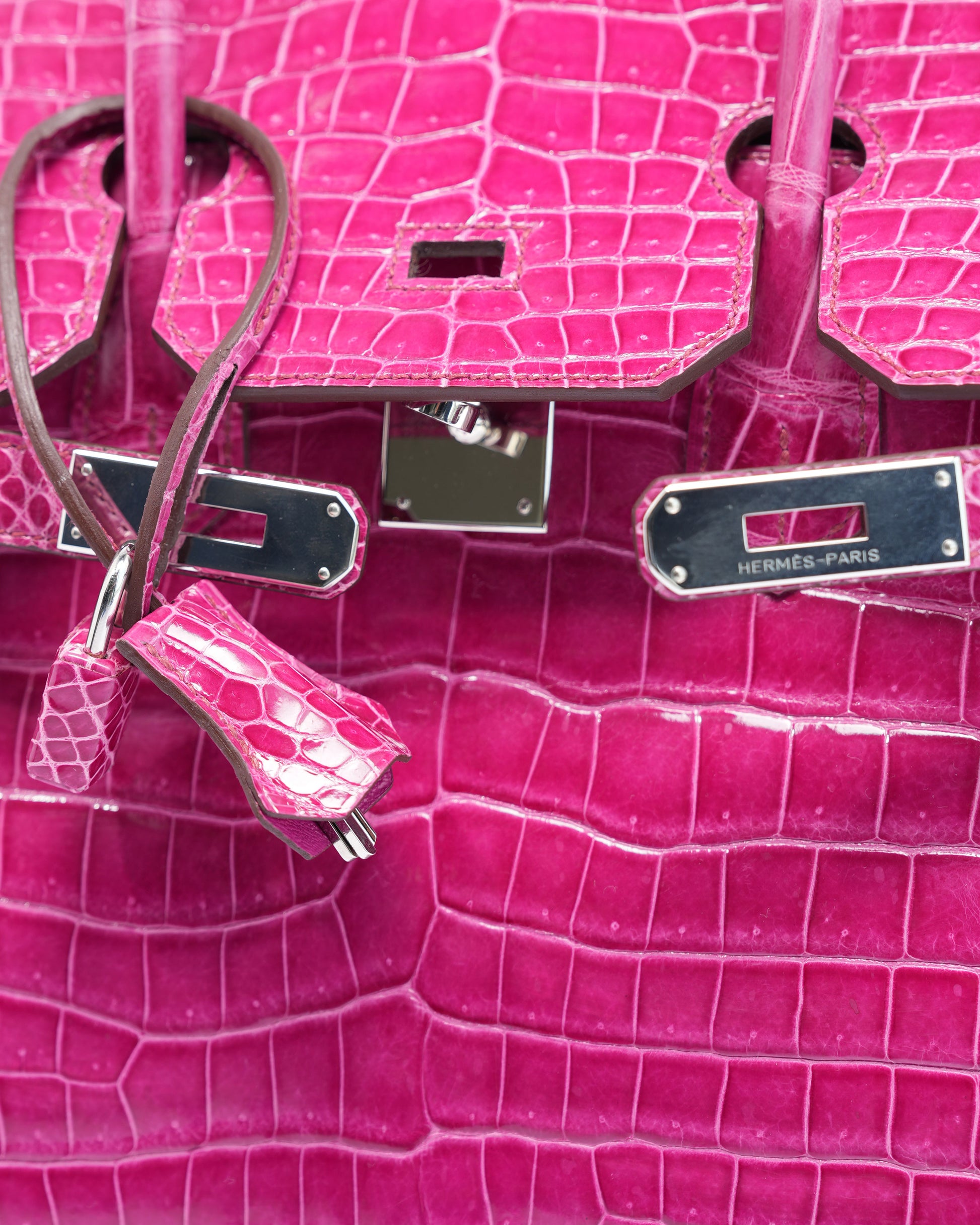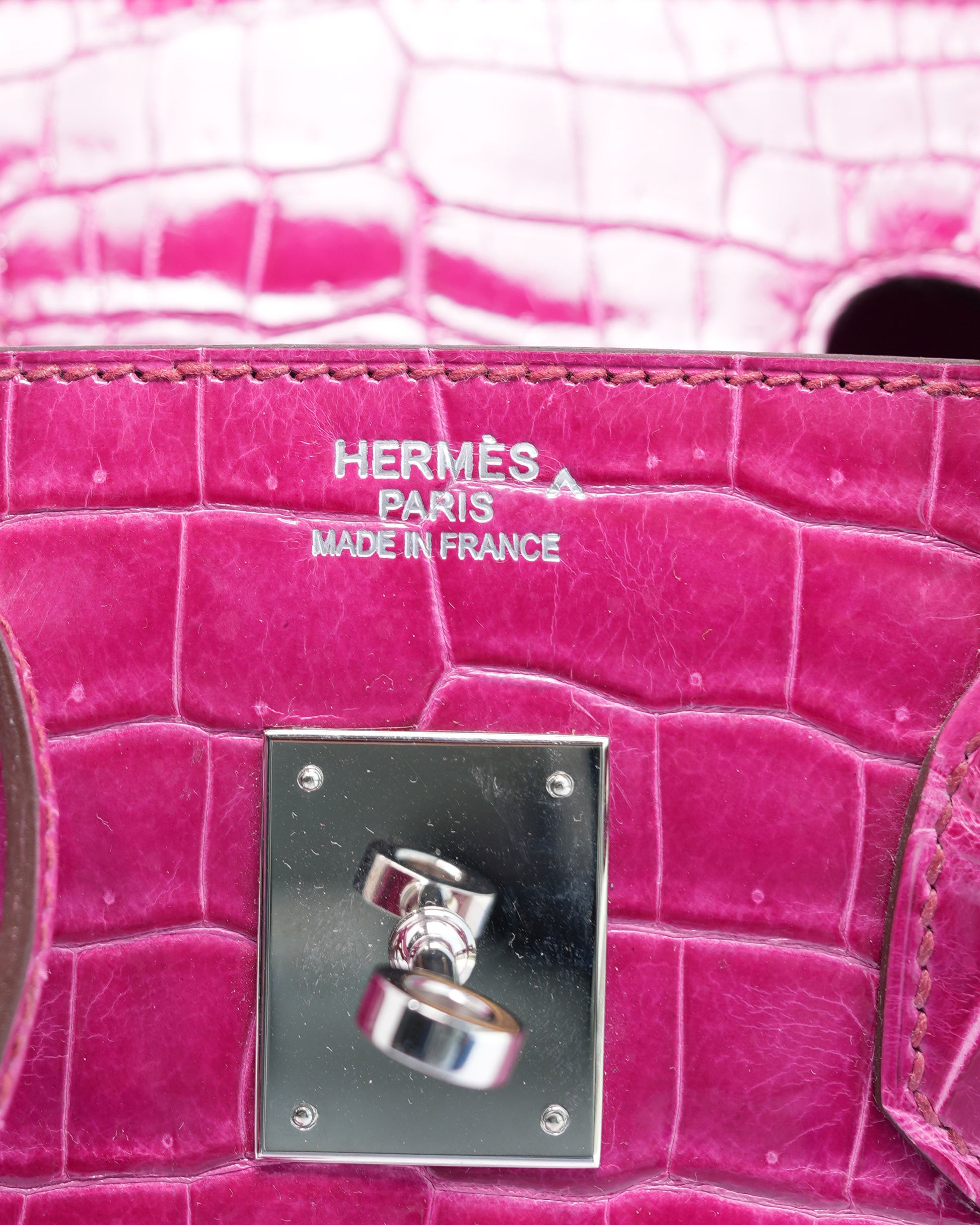 Birkin 35 Rose Pourpre Shiny Porosus Crocodile Palladium Hardware