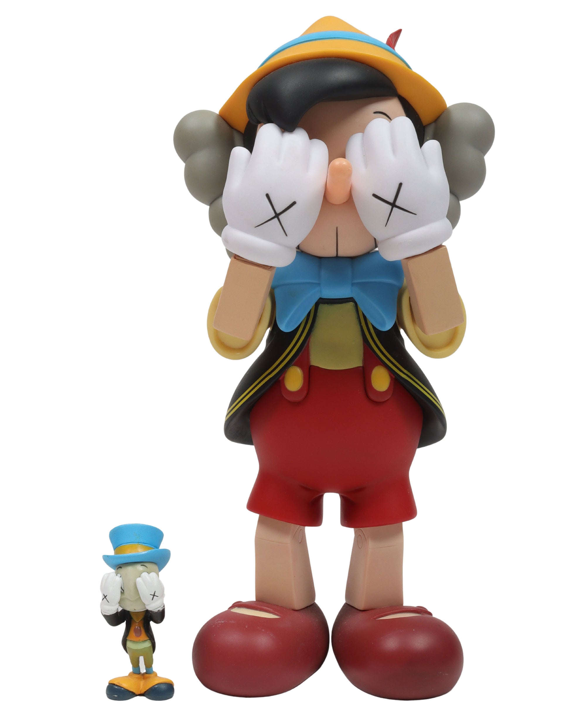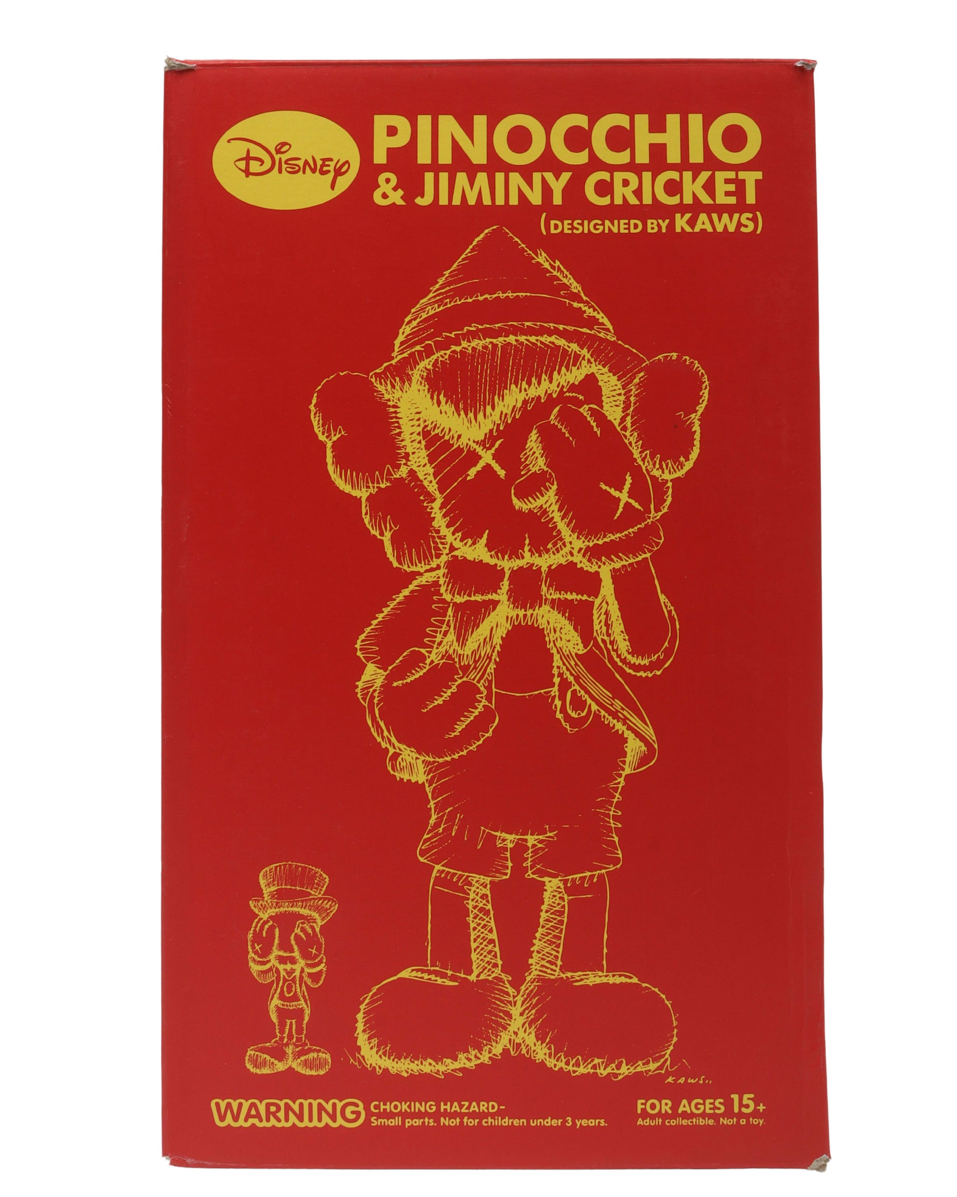 Released in 2010, the KAWS Pinocchio Figure is one of the all-time grails among KAWS collectors everywhere. The set includes Pinocchio and Jiminy Cricket and was released exclusively through his OriginalFake store over a decade ago in 2010. Each figure set showcases the characters in their classic style with a KAWS twist, which includes the classic X motifs on the eyes and hands, along with the iconic KAWS head shape. While this KAWS piece won't come cheap, owning this figure is the ultimate KAWS flex.