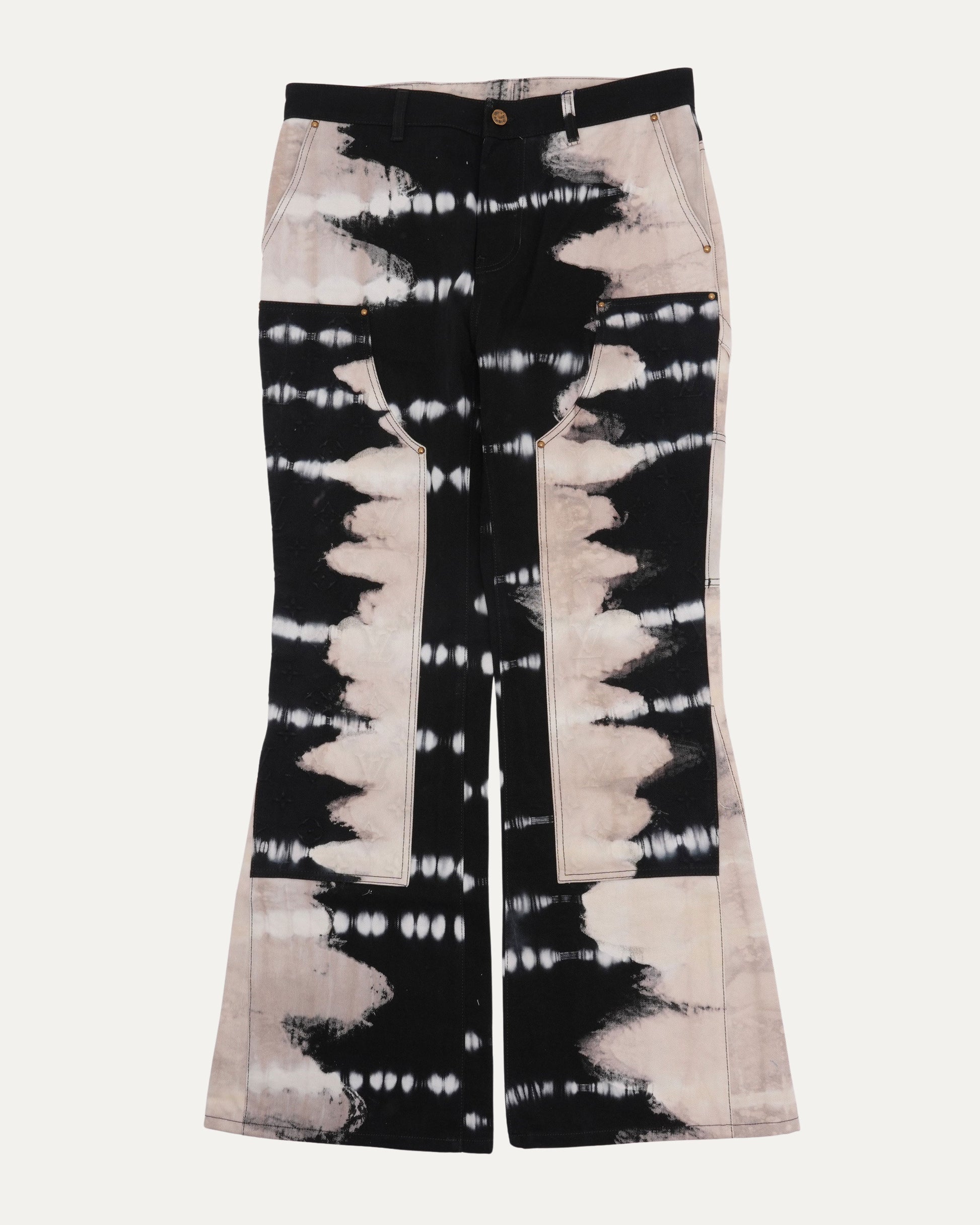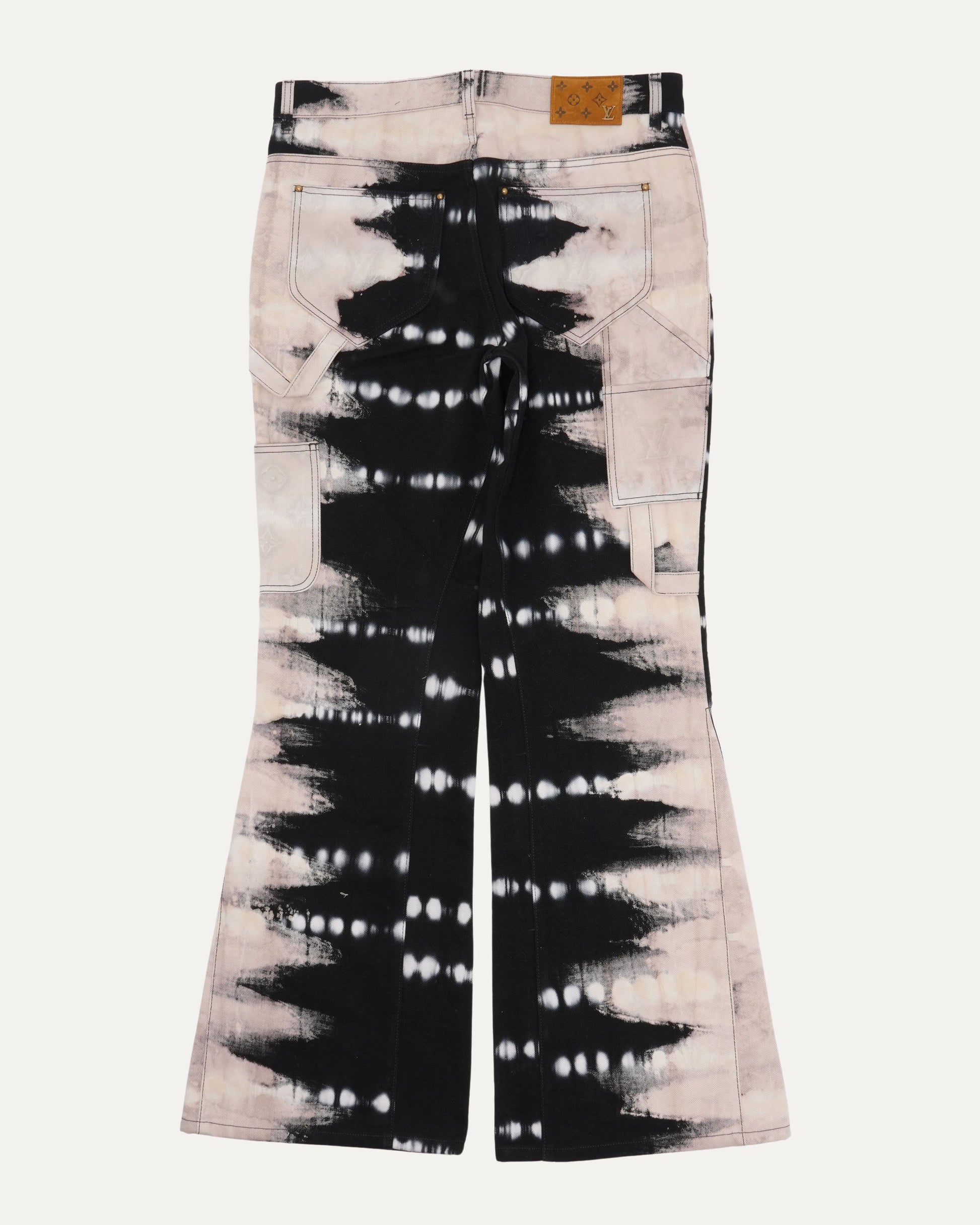 Tie Dye Monogram Double Knee Flared Jeans