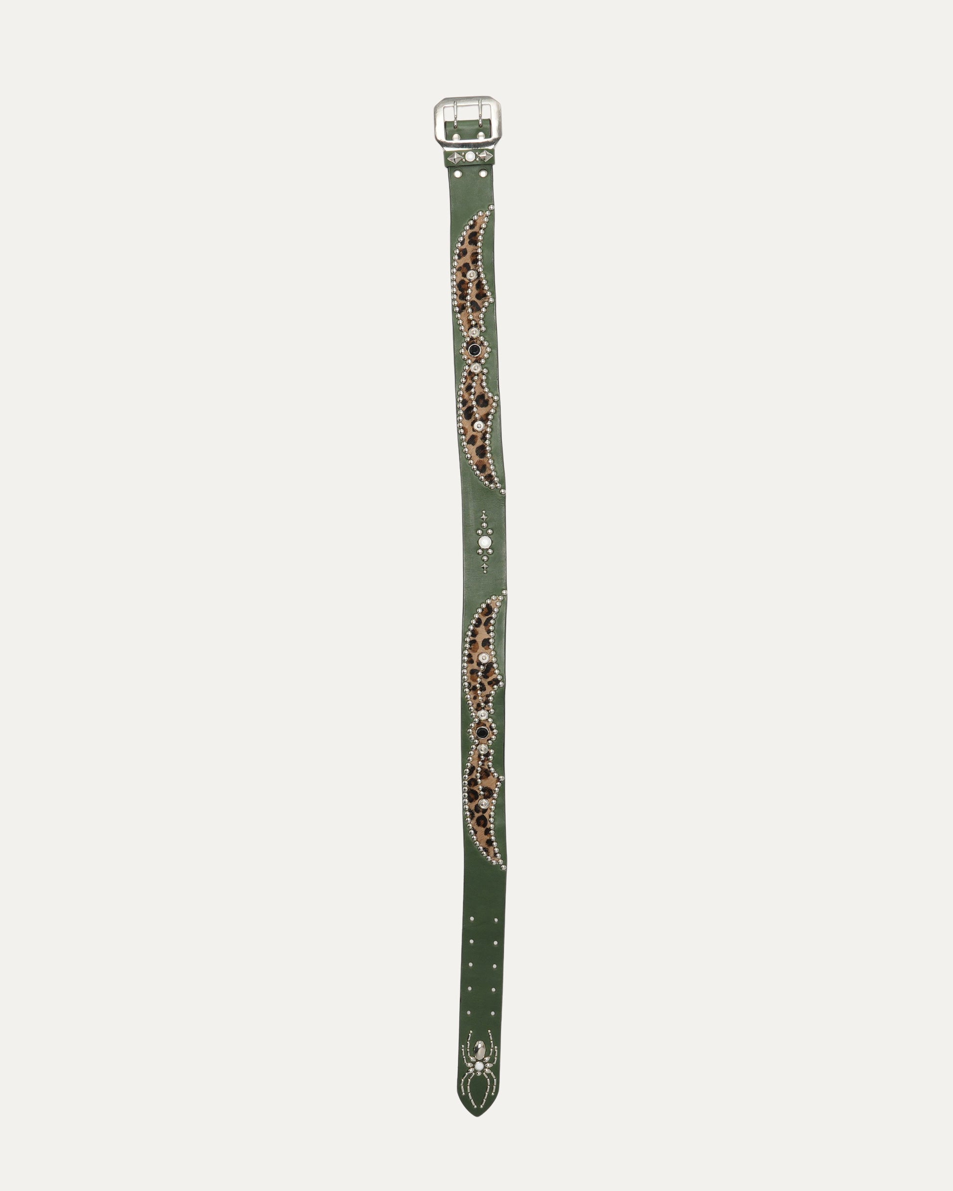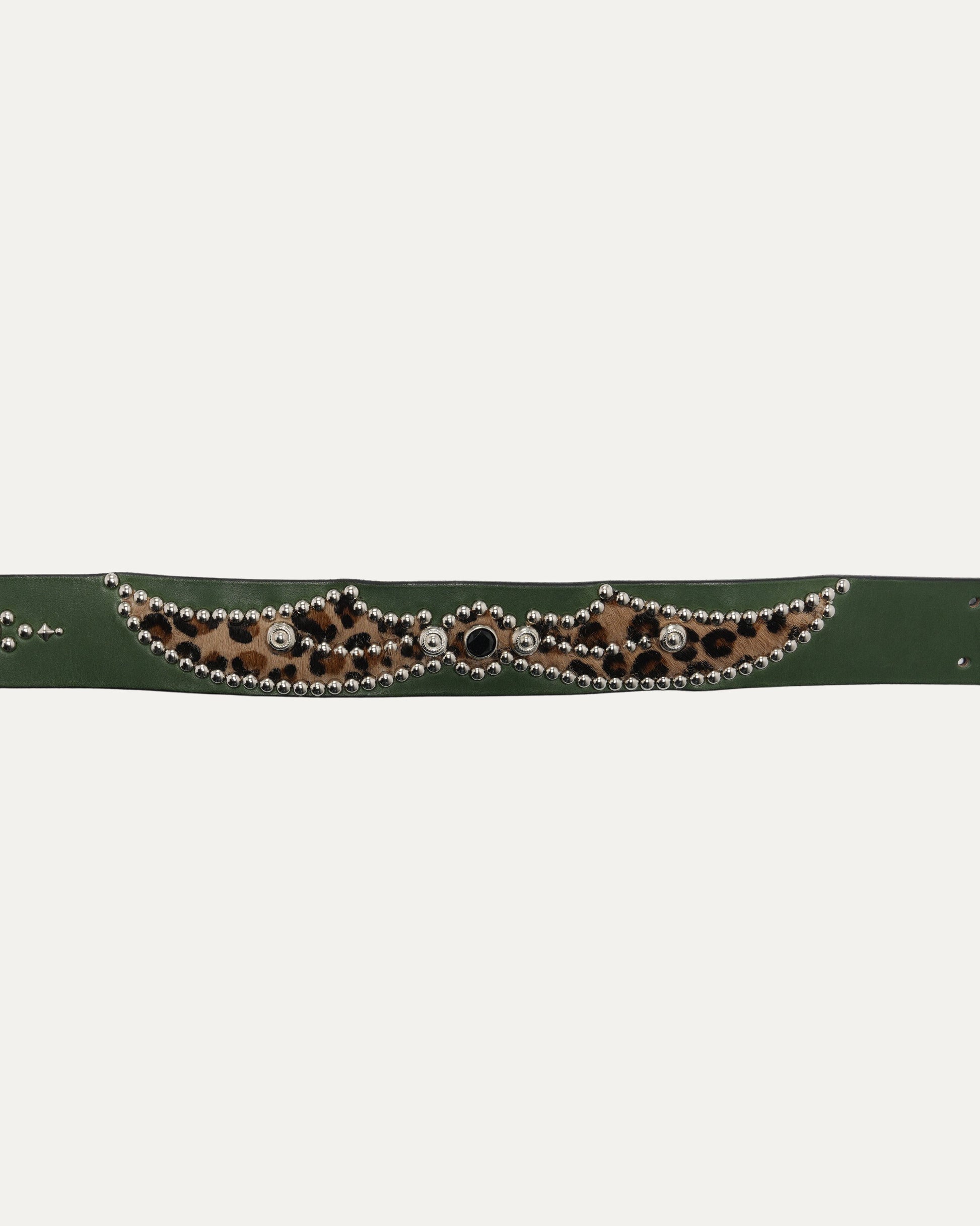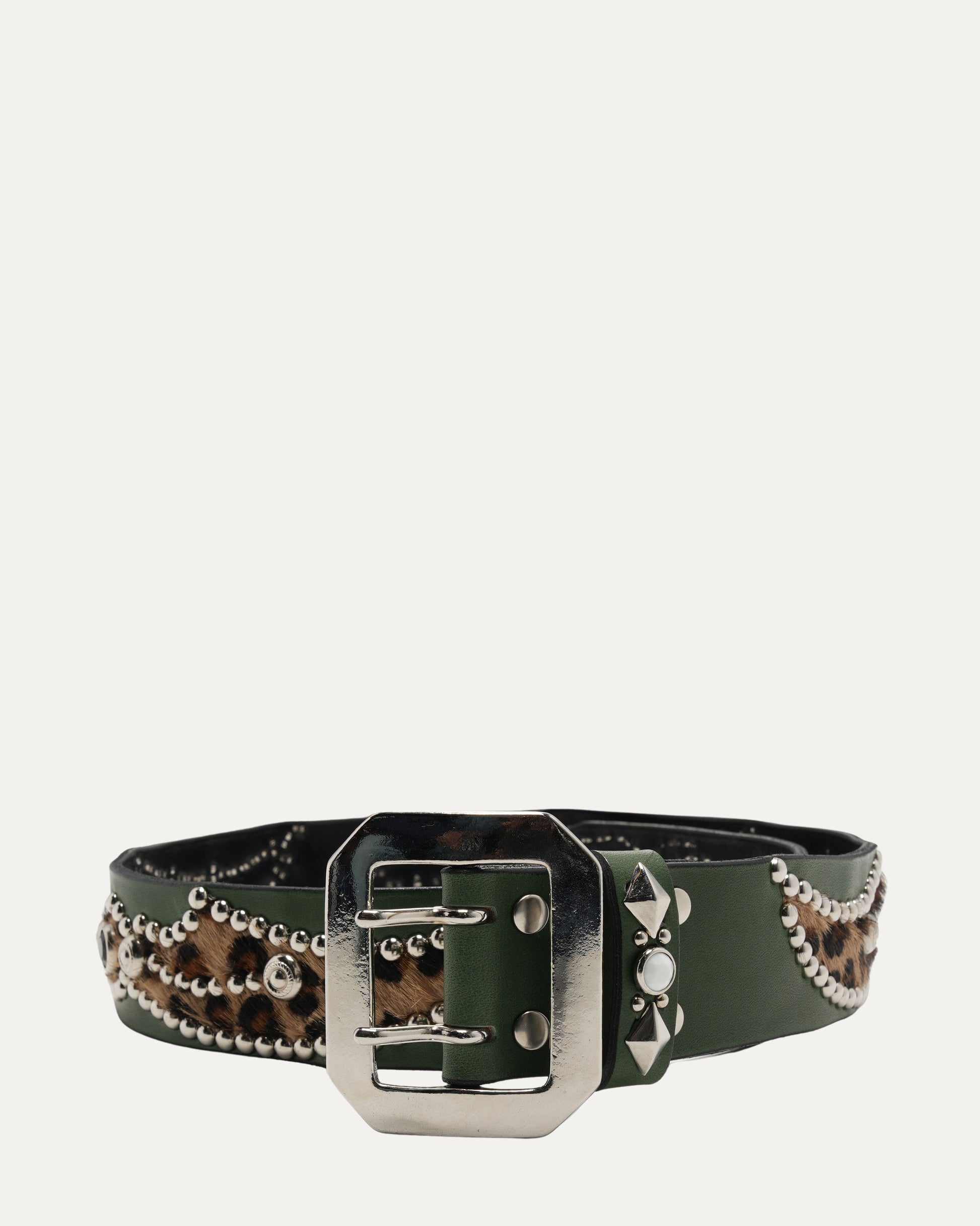 Studded Leather Leopard Hair Inlay Belt