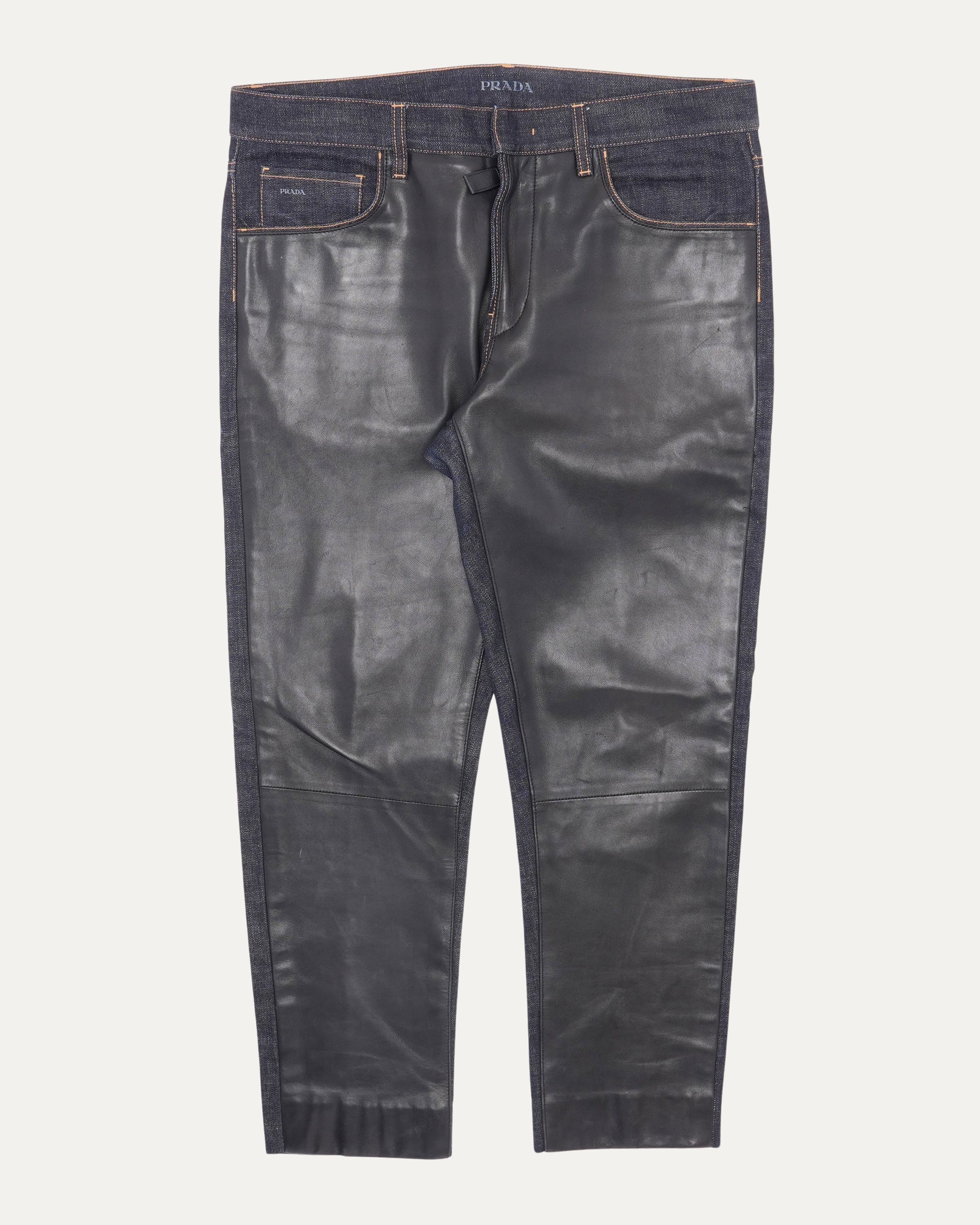Leather Front Jeans