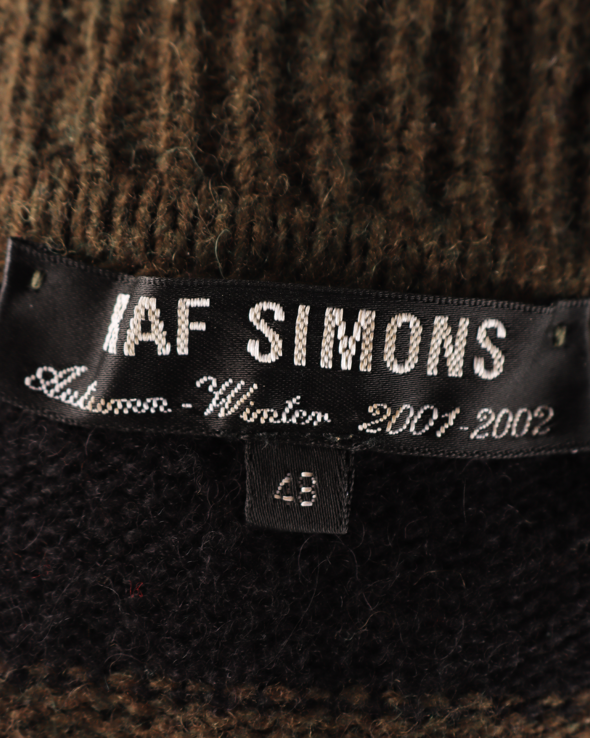 “Riot! Riot! Riot!” sharply pivoted away from the prep school-influenced work of Raf Simons’ past, and in many ways ushered in a new era of his — one defined by political statements, dramatic layering, and a distinct working class skew. The enmeshing of layers which flooded the runway was inspired by teens Simons saw at the Vienna flea market, whom he noted dressed in such a way not to make any specific kind of fashion statement, but simply because of the cold. The references to musicians which had always been intrinsic to his work remained; the runway was rife with callouts to David Bowie, Bauhaus’ Peter Murphy, and the Manic Street Preachers.