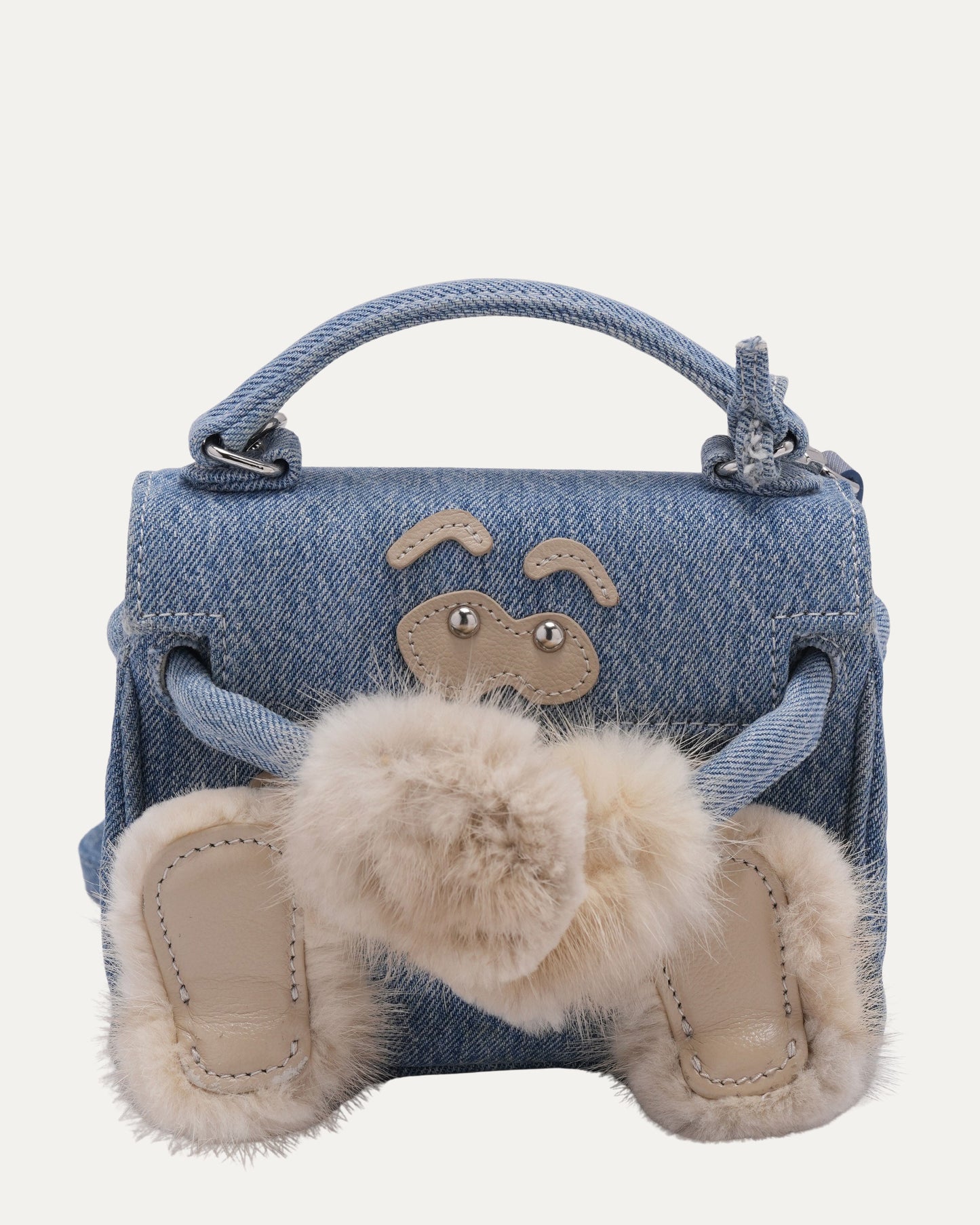 Mink Trimmed Denim Mini Monster Bag