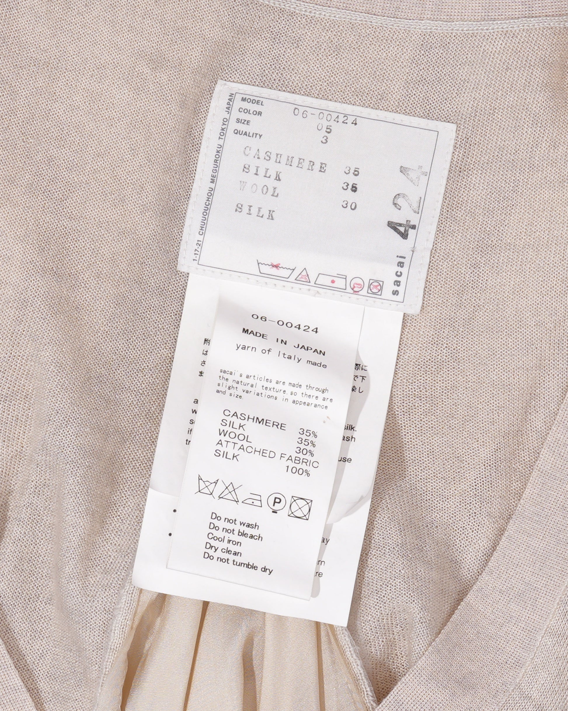 Fabric: 35% Cashmere / 35% Silk / 30% Wool