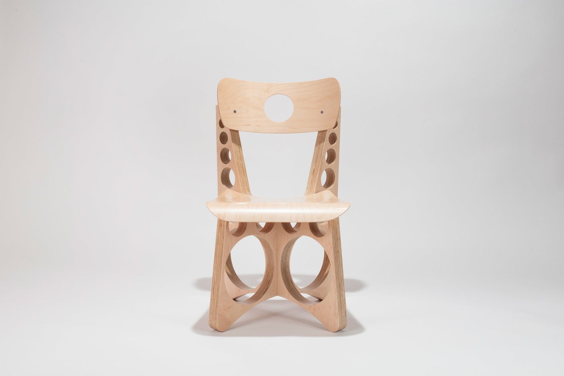 Fully assembled maple plywood chair with rubber flex-mounts and stainless steel screws.