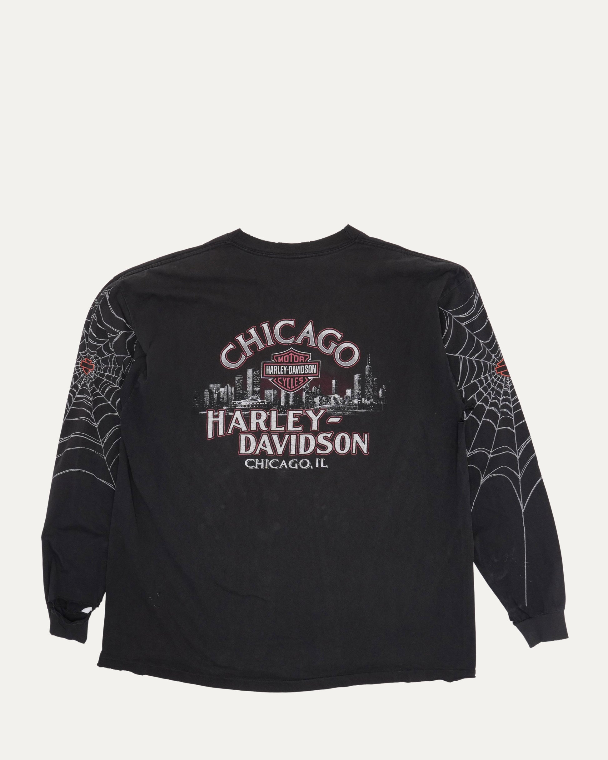 Harley Davidson Black Widow Spider Web Chicago Long Sleeve T-Shirt
