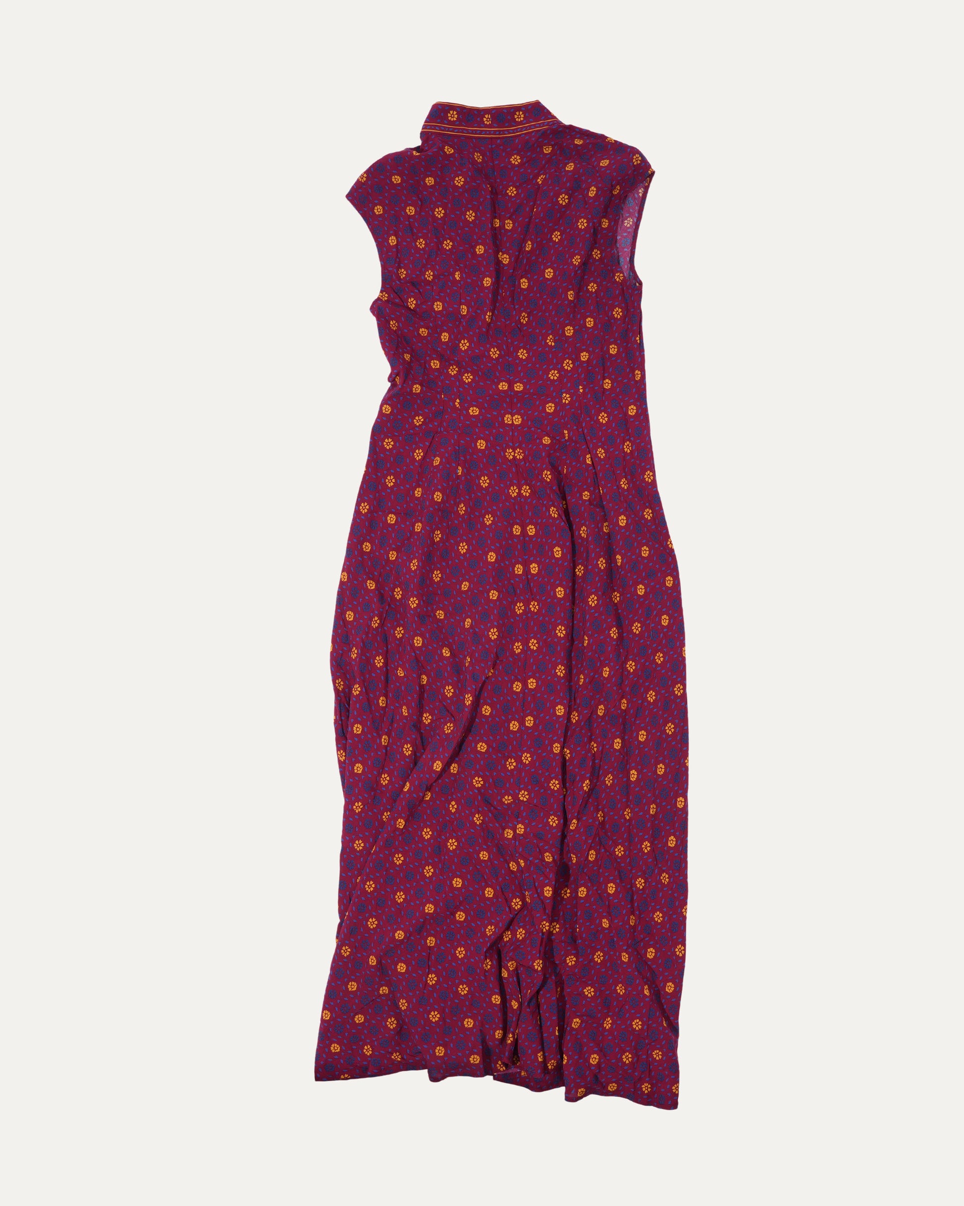 Madras Floral Tie-Neck Midi Dress